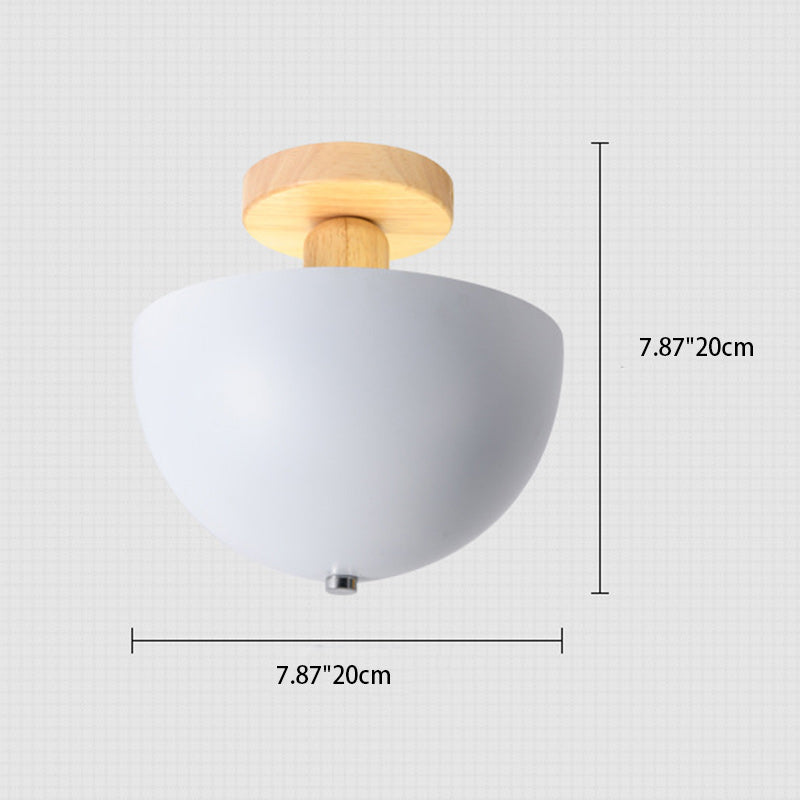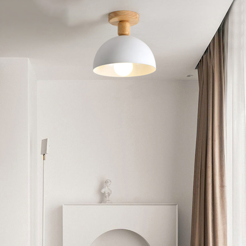 Modern Minimalist Round Dome Iron Wood 1-Light Semi-Flush Mount Ceiling Light For Living Room