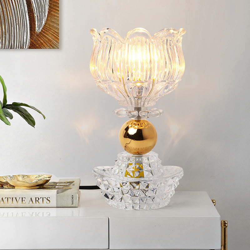 Modern Minimalist Round Flower Glass Metal LED Table Lamp For Bedroom