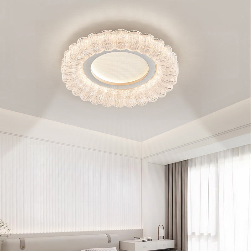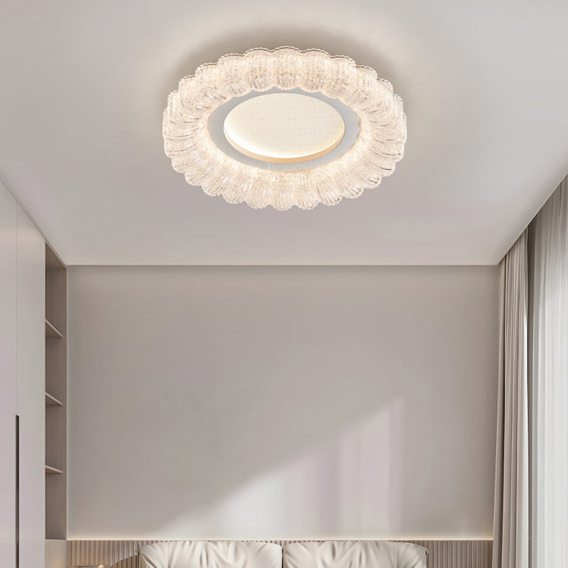 Modern Minimalist Round Flower Petal Hardware Acrylic LED Flush Mount Ceiling Light For Living Room