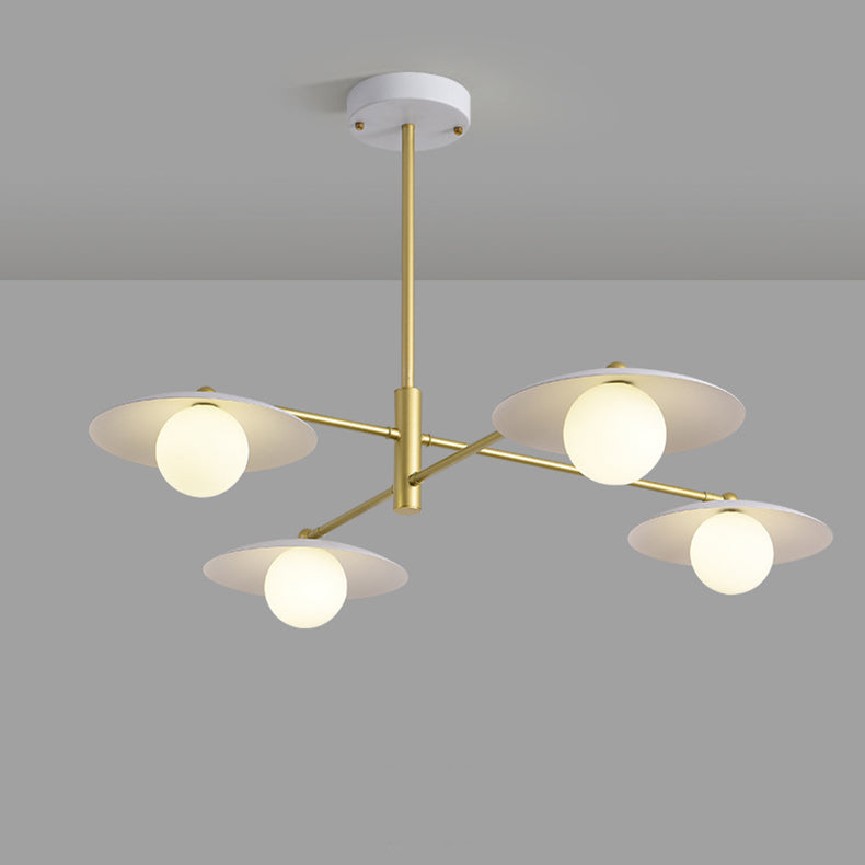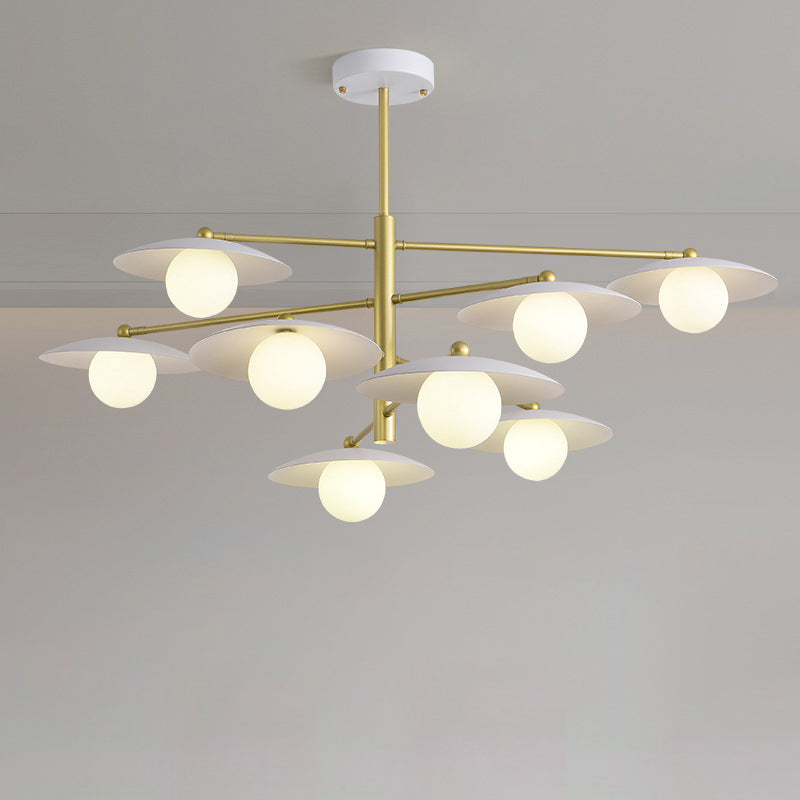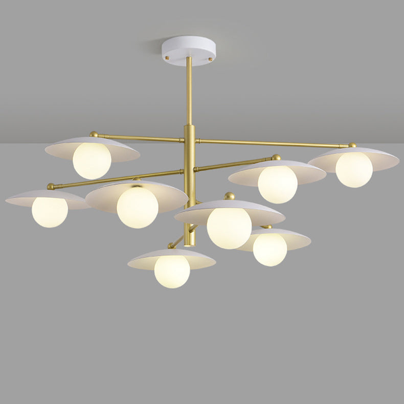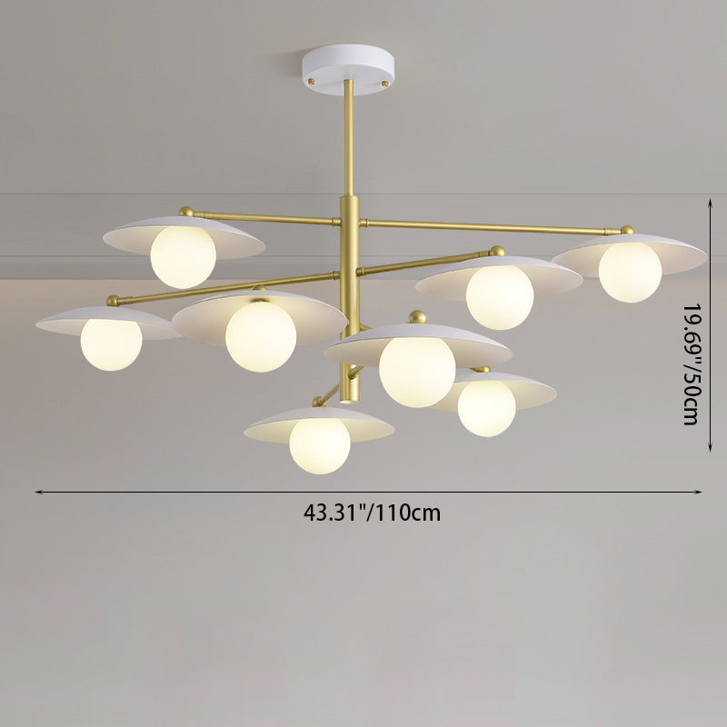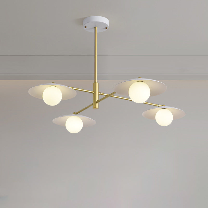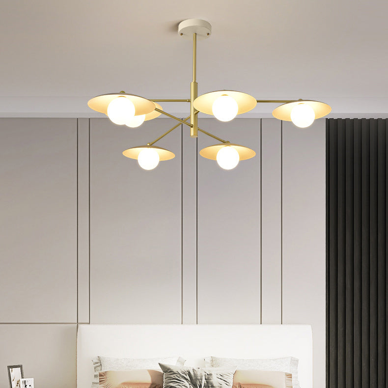 Modern Minimalist Round Flying Saucer Orb Branch Iron Glass 4/6/8 Light Chandelier For Living Room