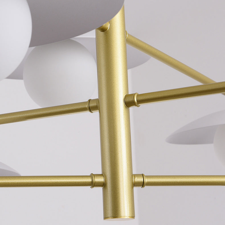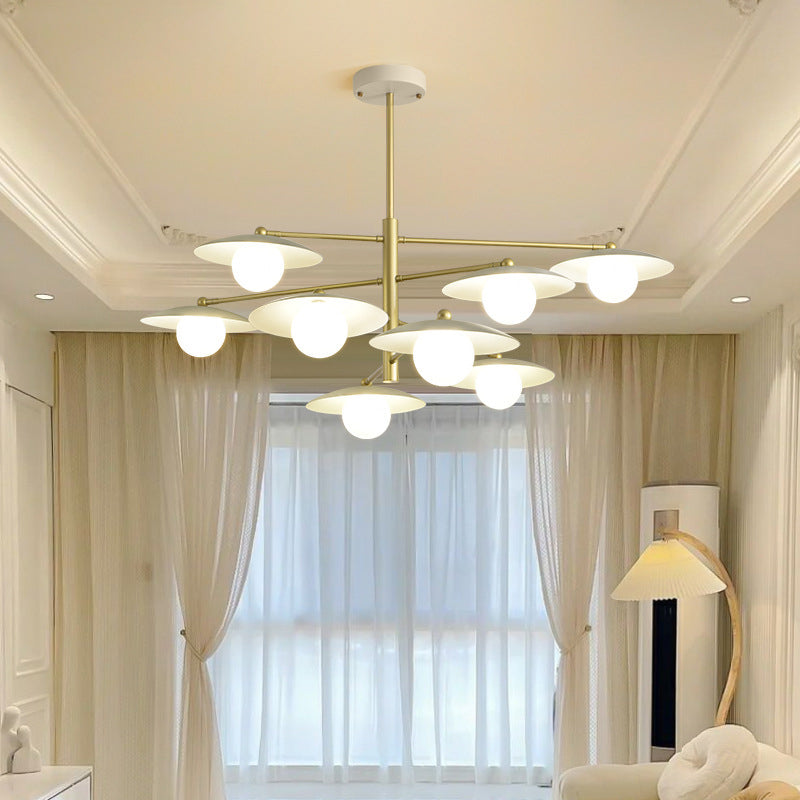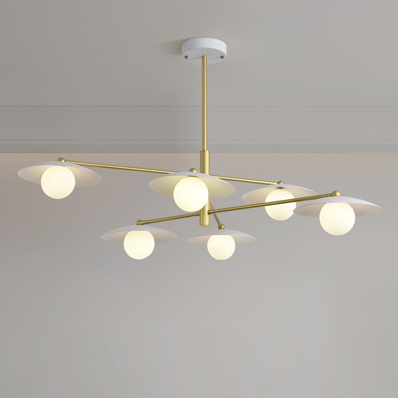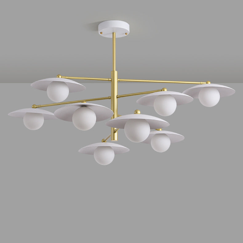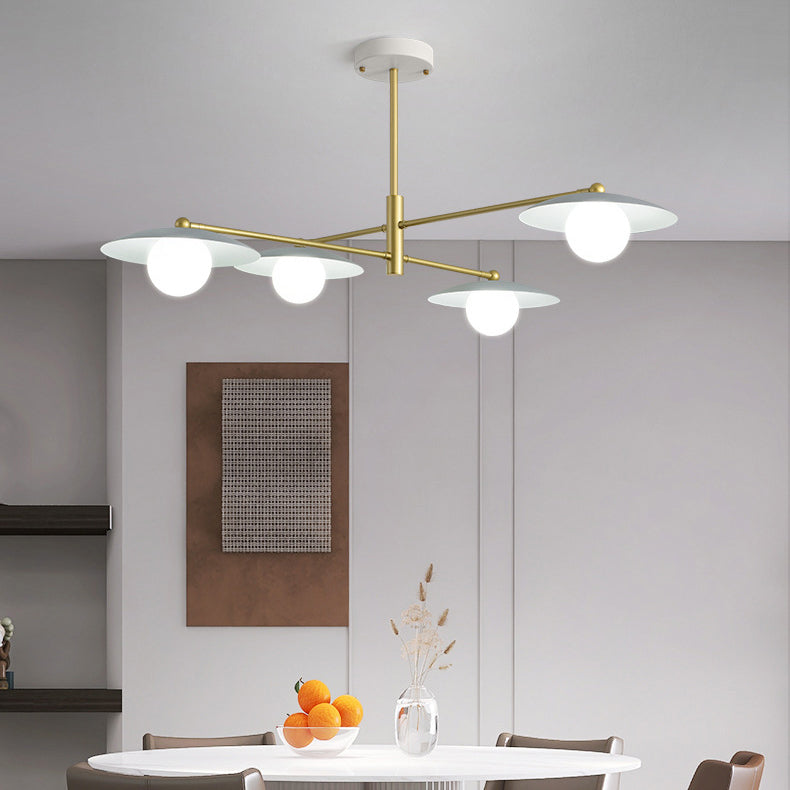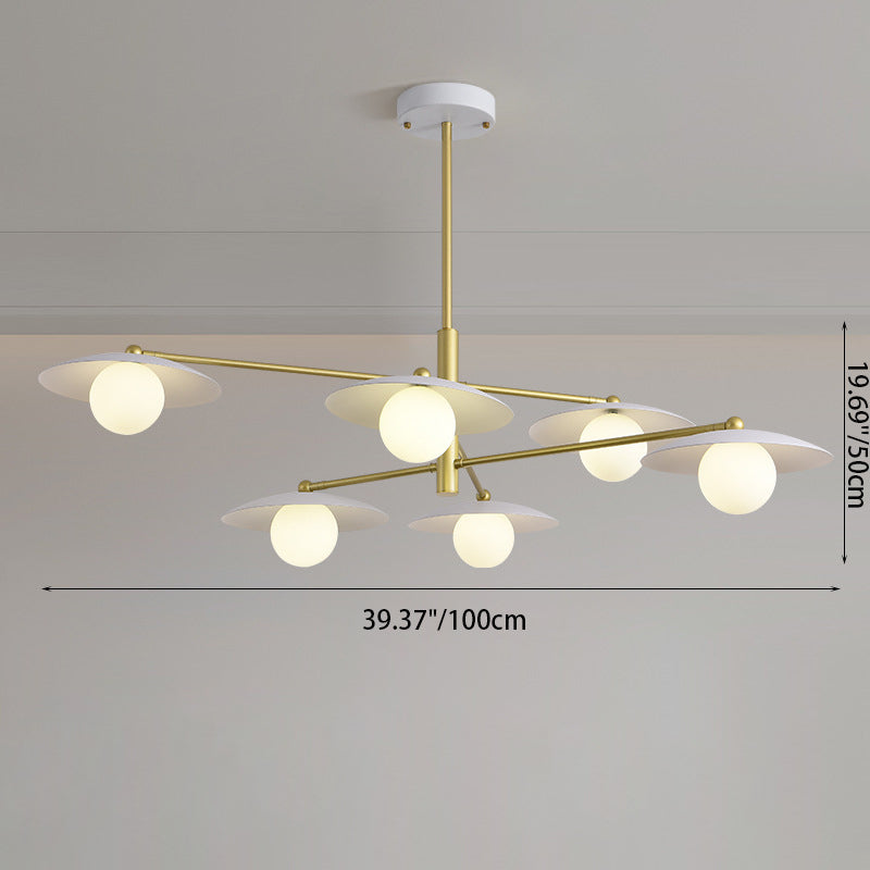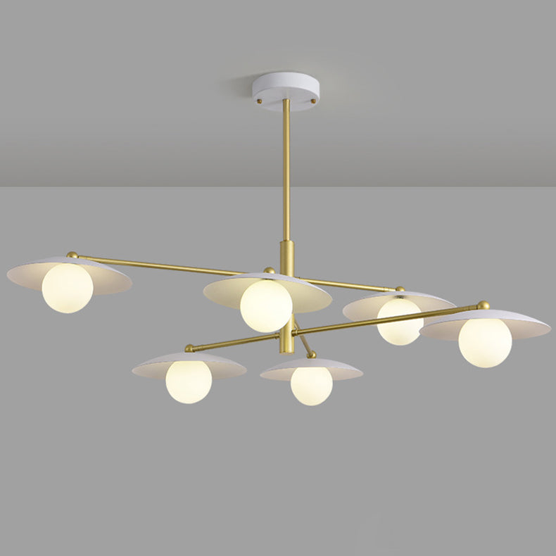 Modern Minimalist Round Flying Saucer Orb Branch Iron Glass 4/6/8 Light Chandelier For Living Room