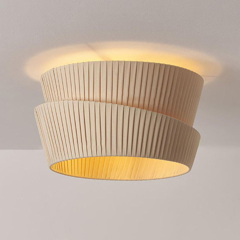 Modern Minimalist Round Hardware Fiber Fabric 3-Light Flush Mount Ceiling Light For Living Room