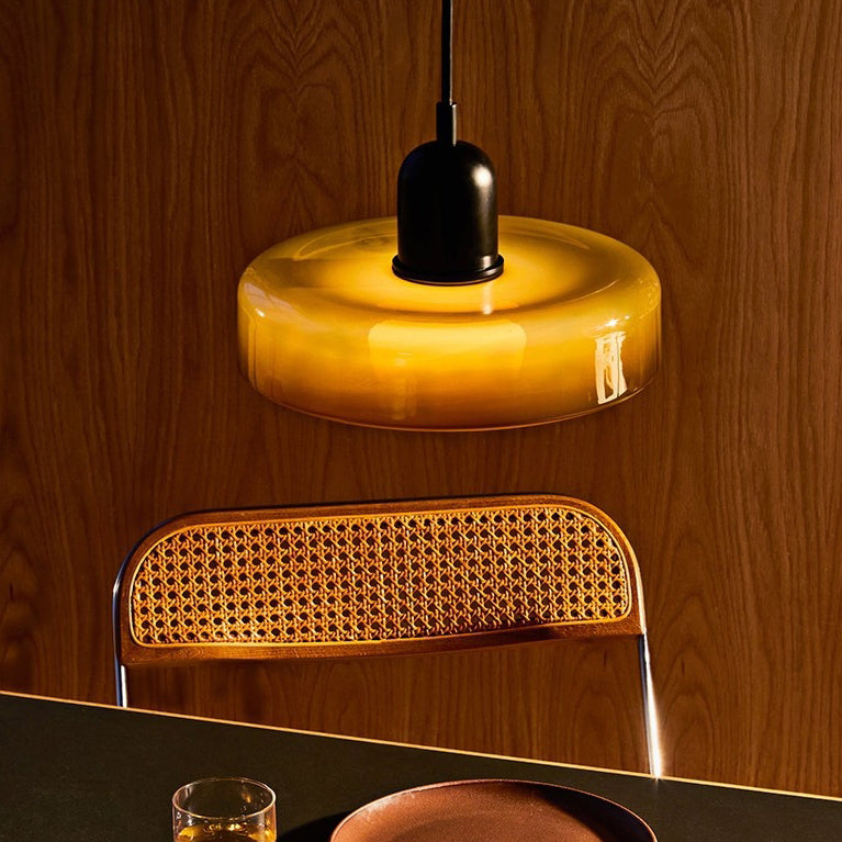 Modern Minimalist Round Iron Glass 1-Light Pendant Light For Bedroom