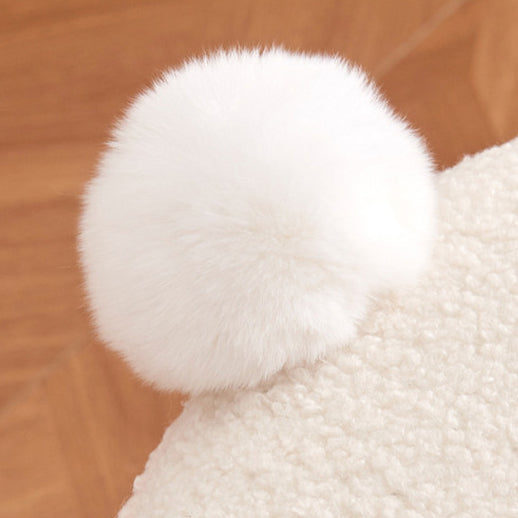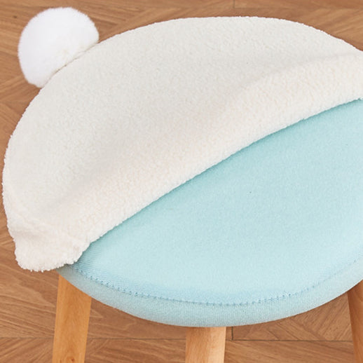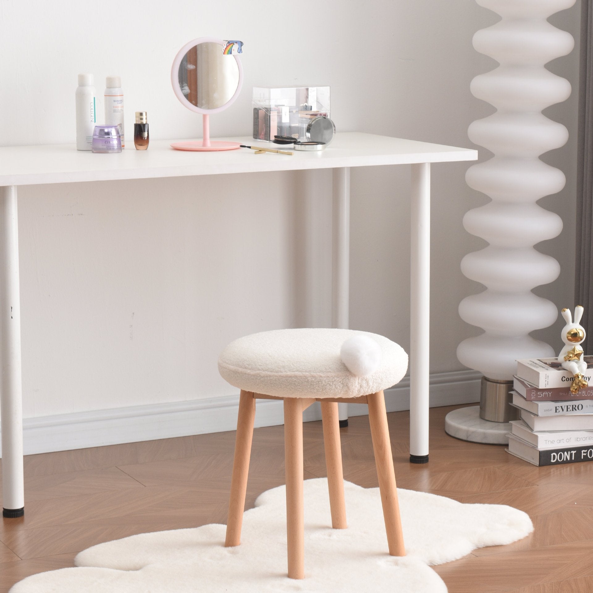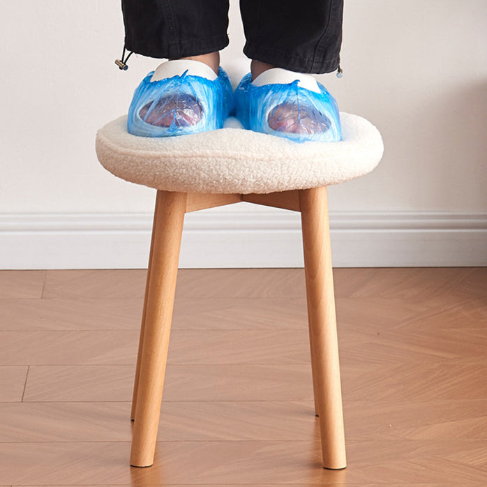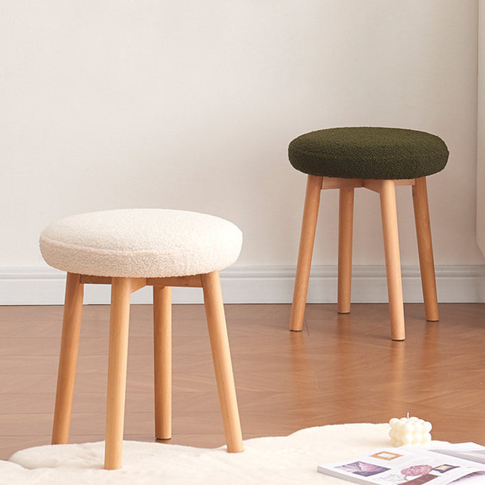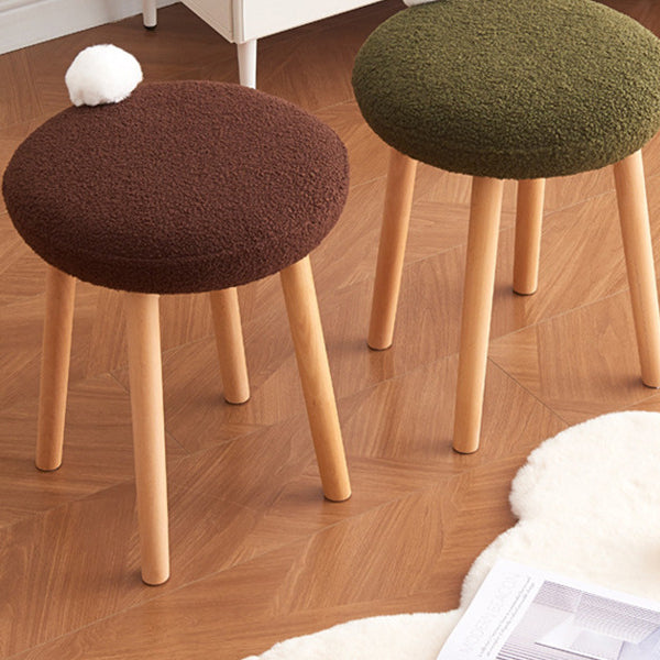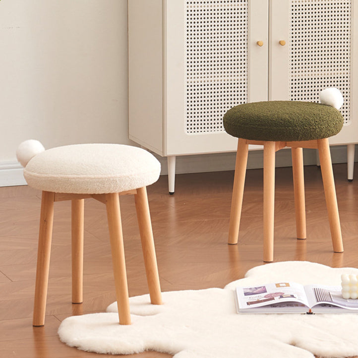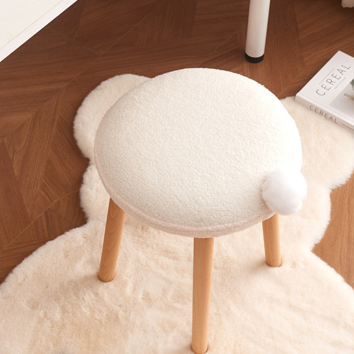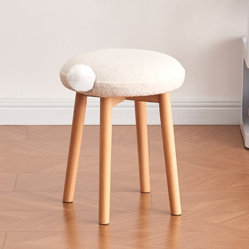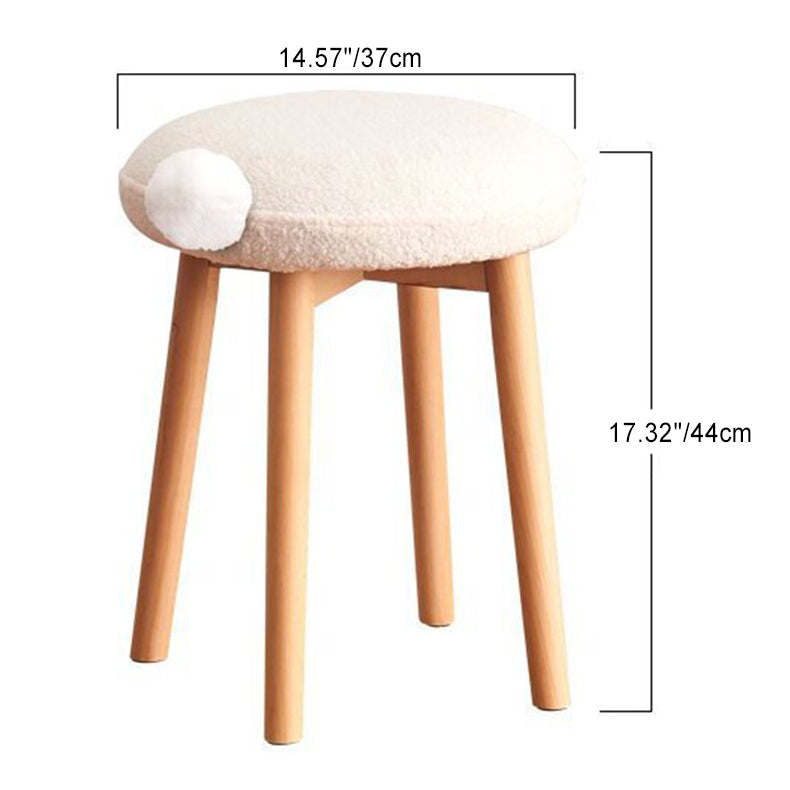 Modern Minimalist Round Lambswool Wood Vanity Stool For Bedroom