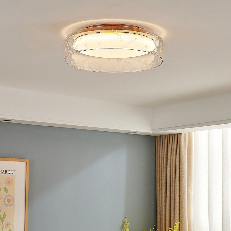 Modern Minimalist Round Metal Acrylic Glass LED Flush Mount Ceiling Light For Bedroom