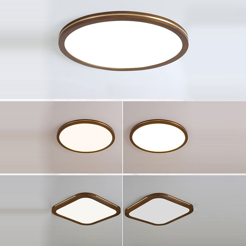 Modern Minimalist Round Square Rectangular Wood Acrylic LED Flush Mount Ceiling Light For Living Room