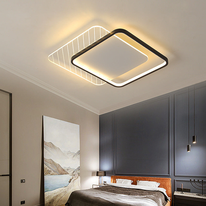 Modern Minimalist Round Square Stacking Acrylic Iron LED Flush Mount Ceiling Light For Living Room