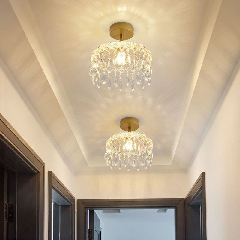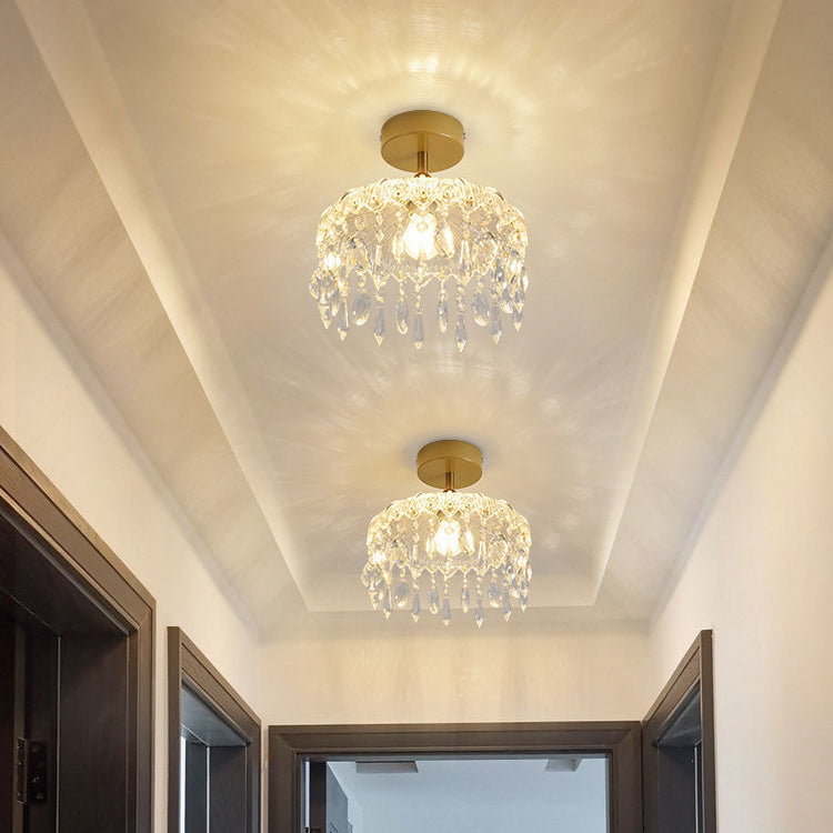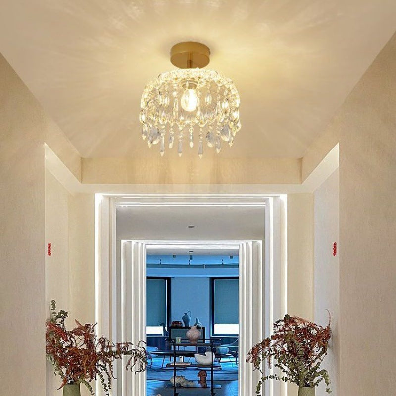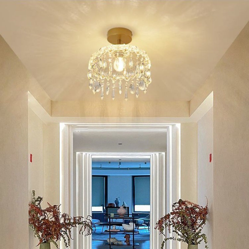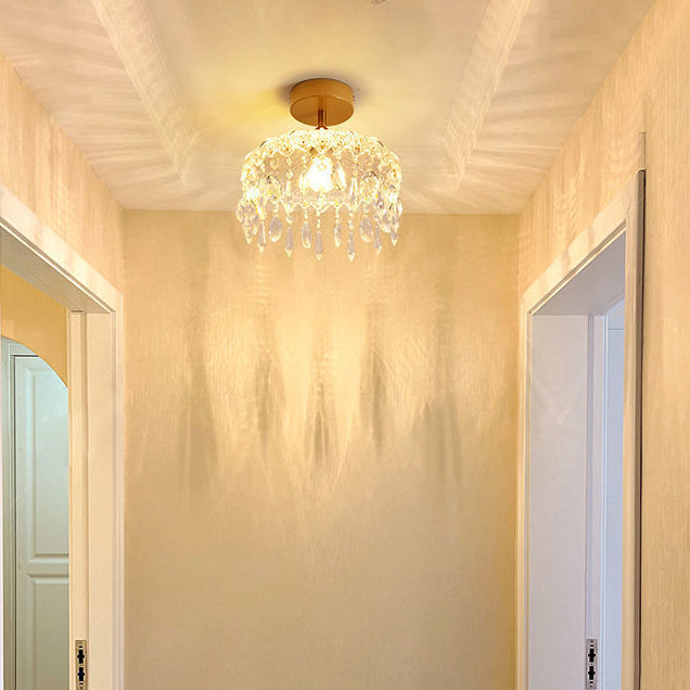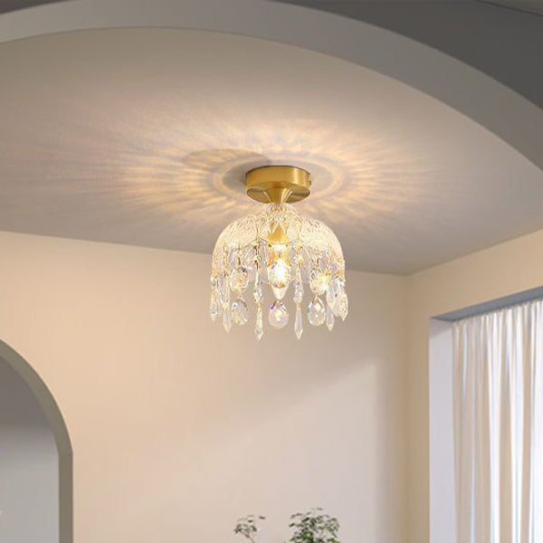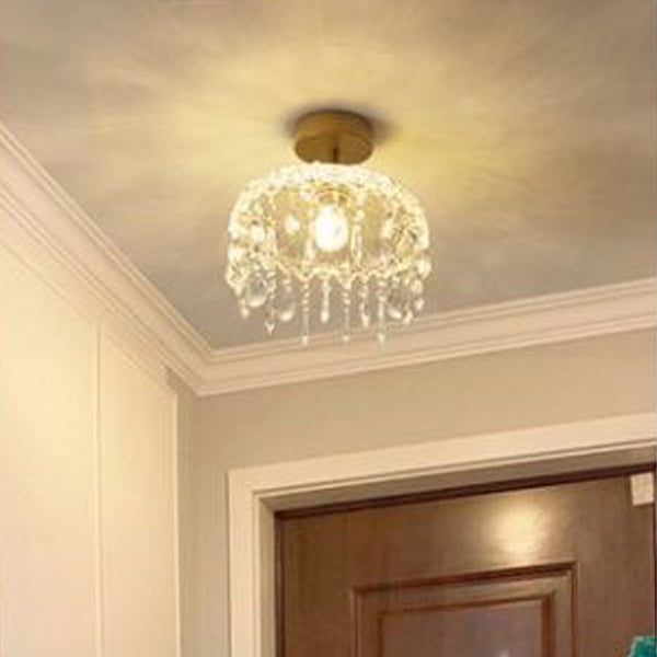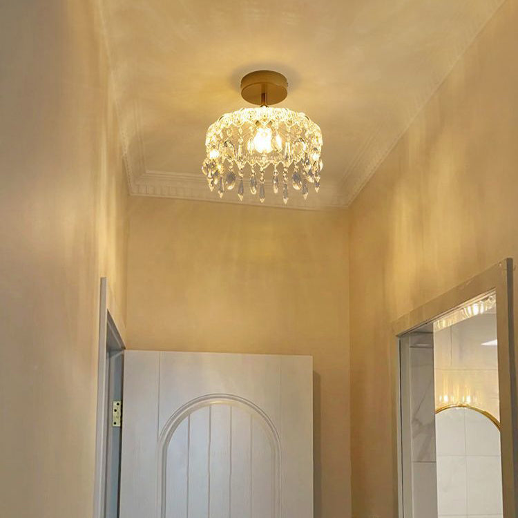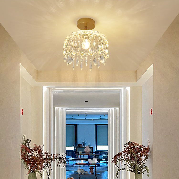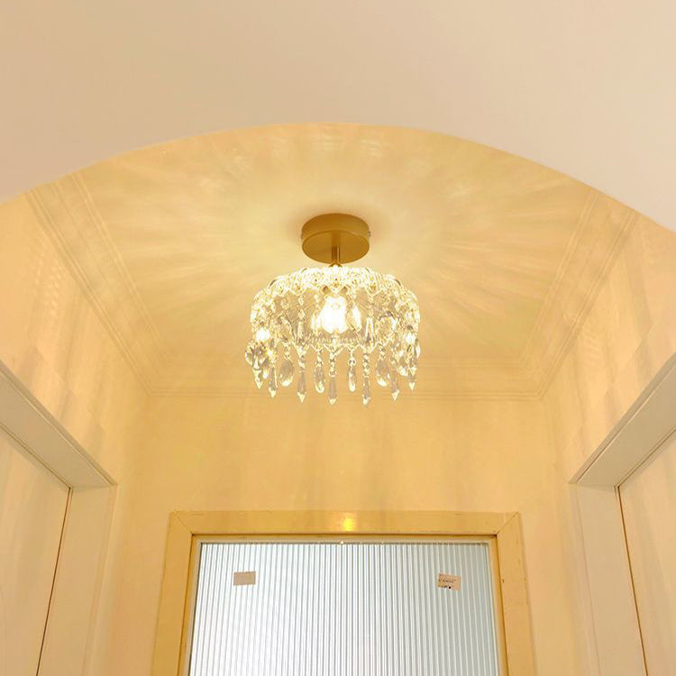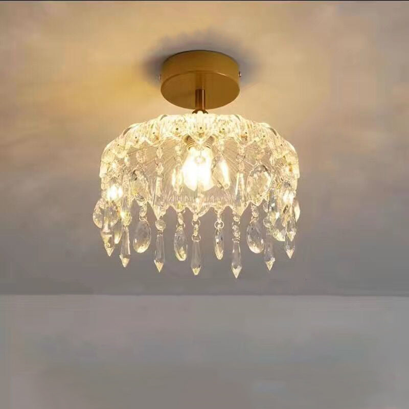 Modern Minimalist Round Teardrop Crystal Iron Frame Glass Shade 1-Light Semi-Flush Mount Ceiling Light For Living Room