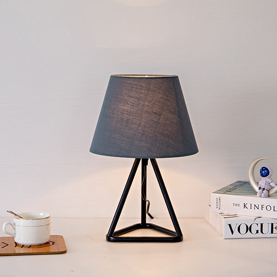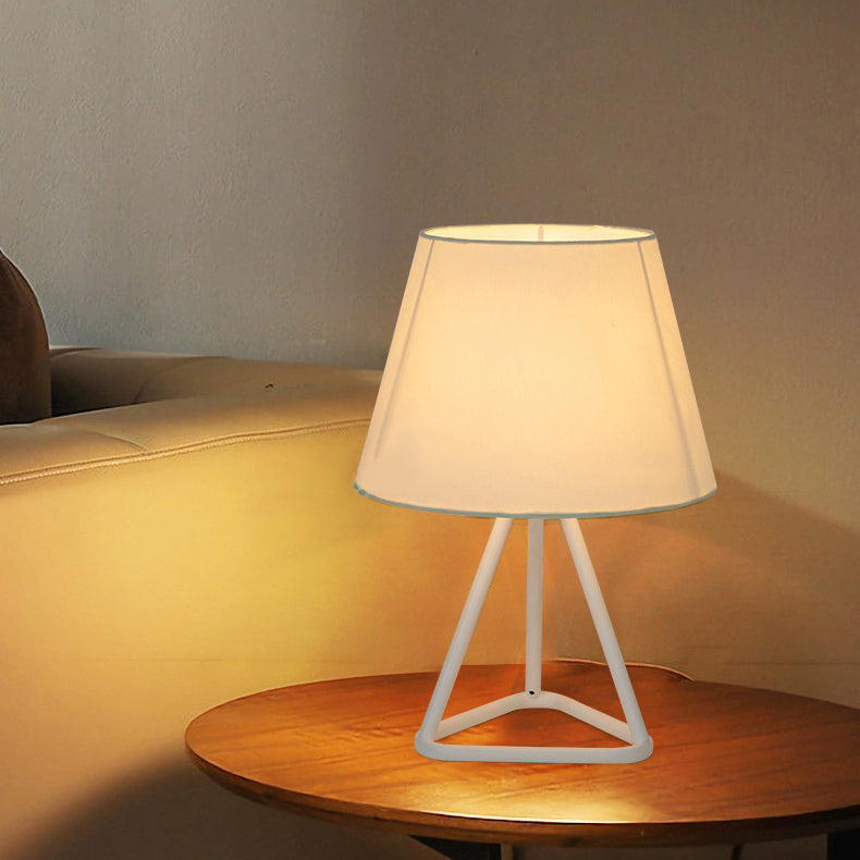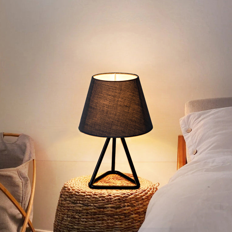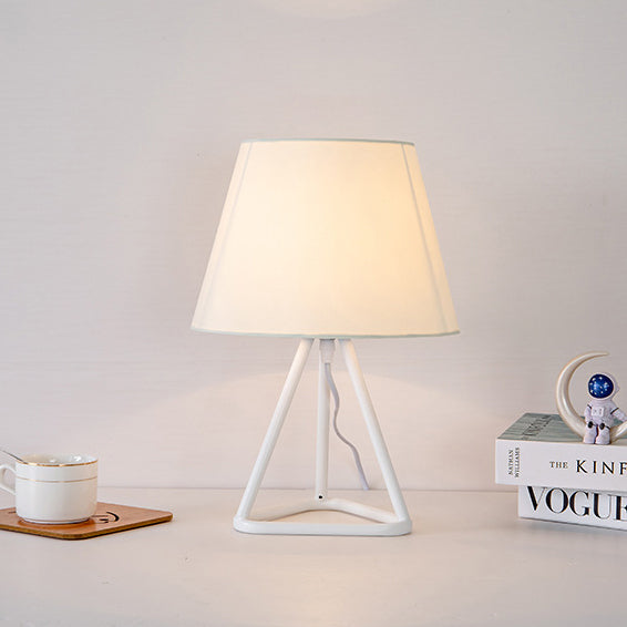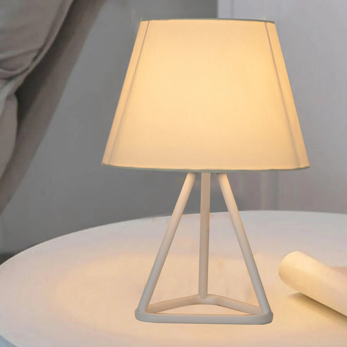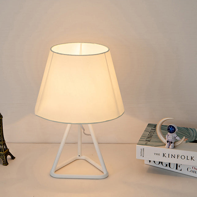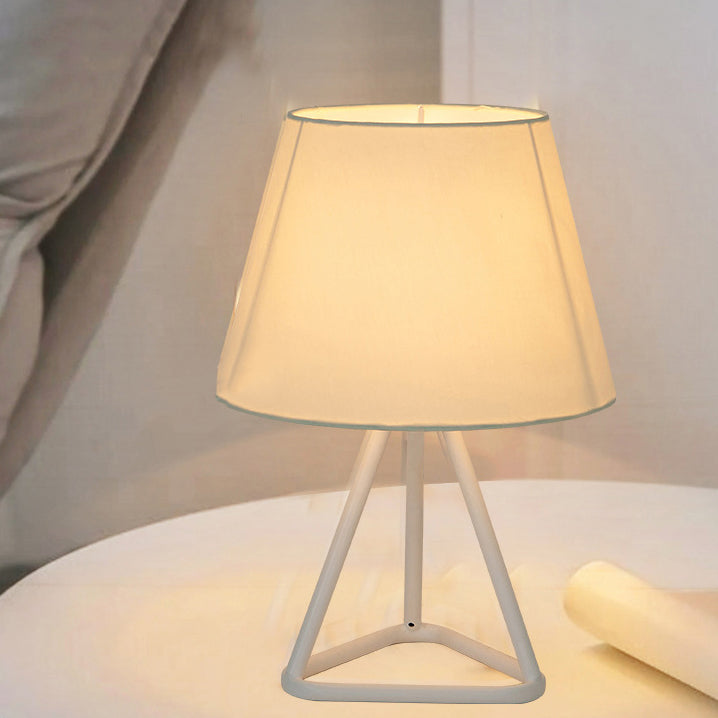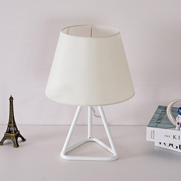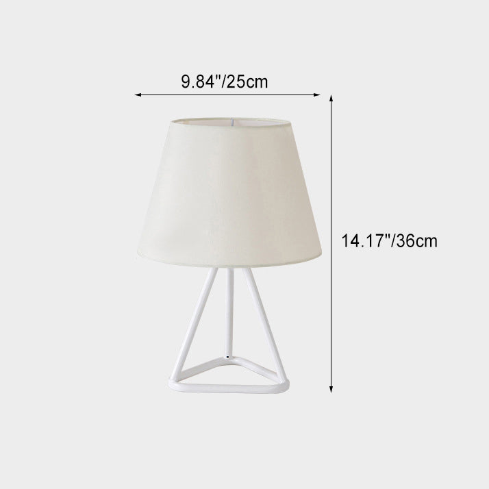 Modern Minimalist Round Trapezoidal Fabric Iron Tripod 1-Light Table Lamp For Bedroom