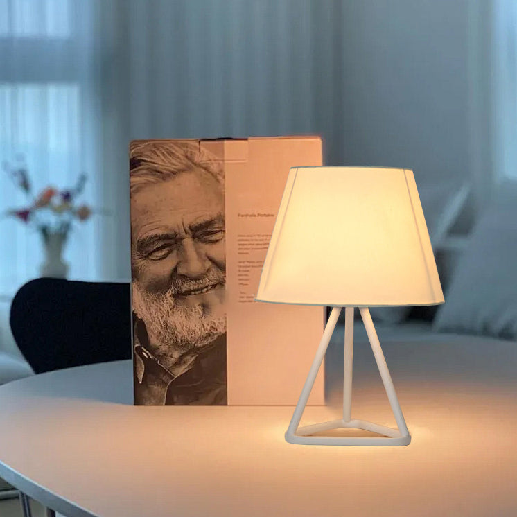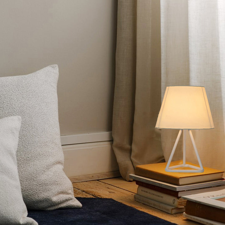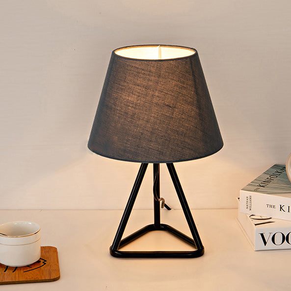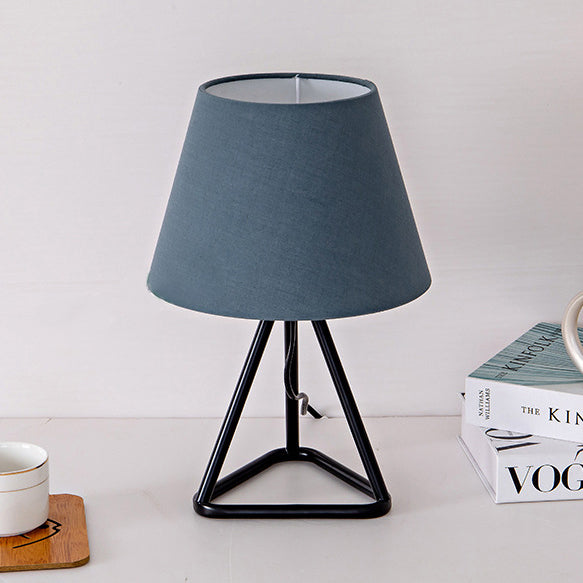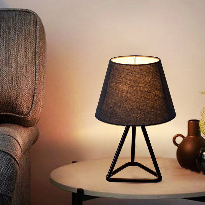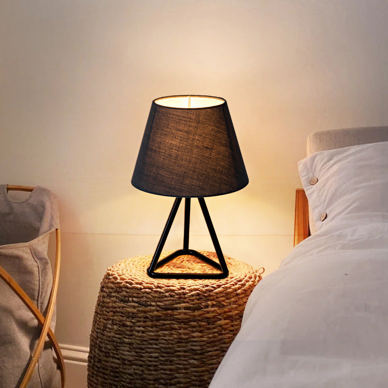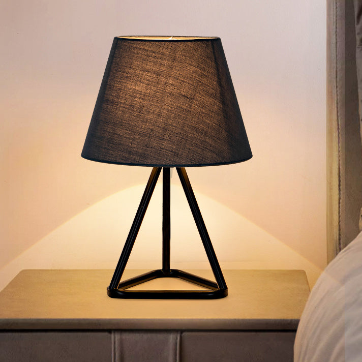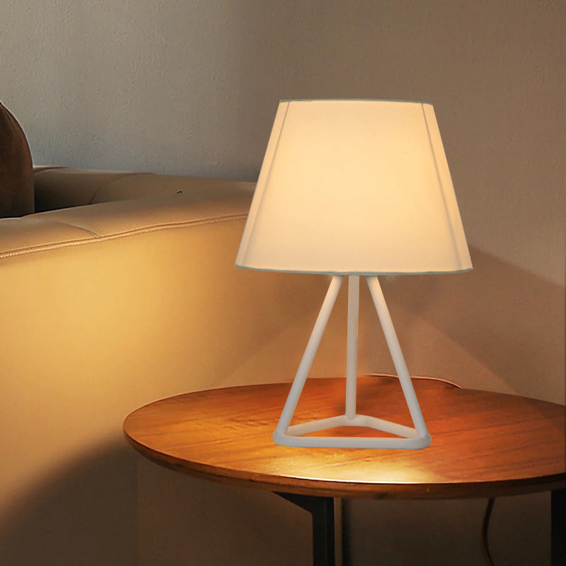 Modern Minimalist Round Trapezoidal Fabric Iron Tripod 1-Light Table Lamp For Bedroom