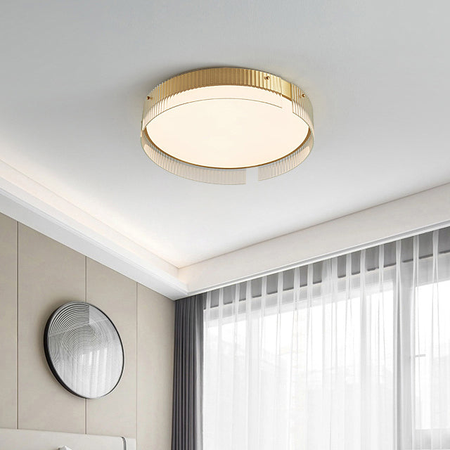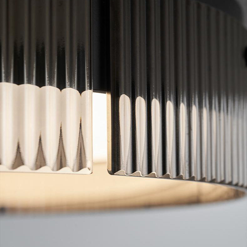 Modern Minimalist Round Vertical Pattern Glass PVC Metal LED Flush Mount Ceiling Light For Living Room