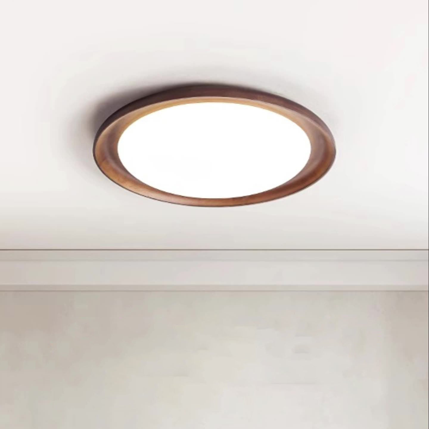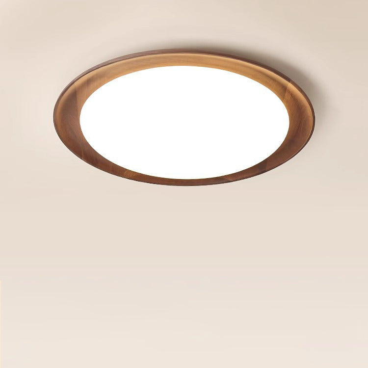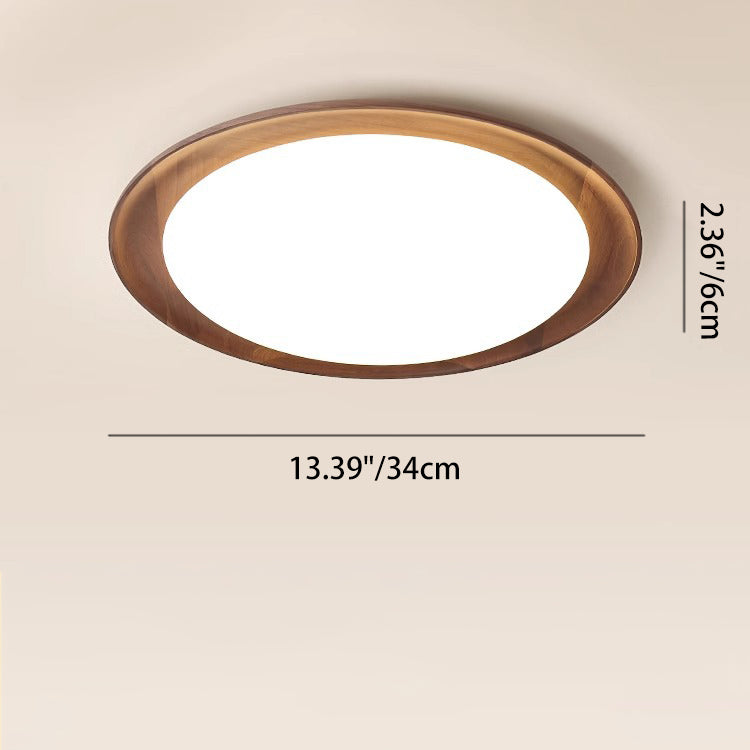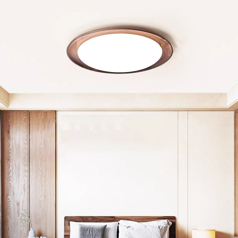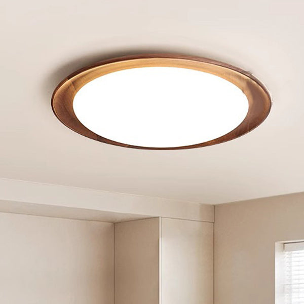 Modern Minimalist Round Walnut Wood Acrylic LED Flush Mount Ceiling Light For Living Room