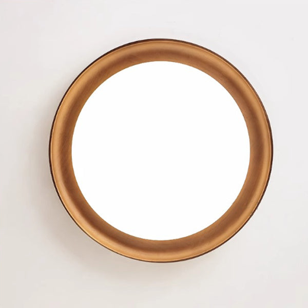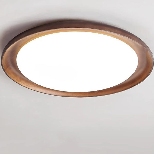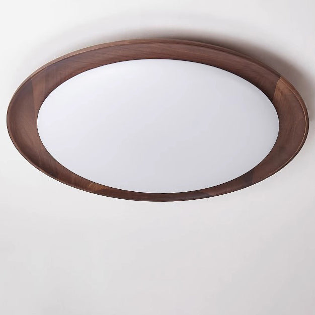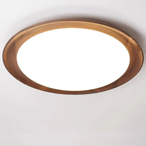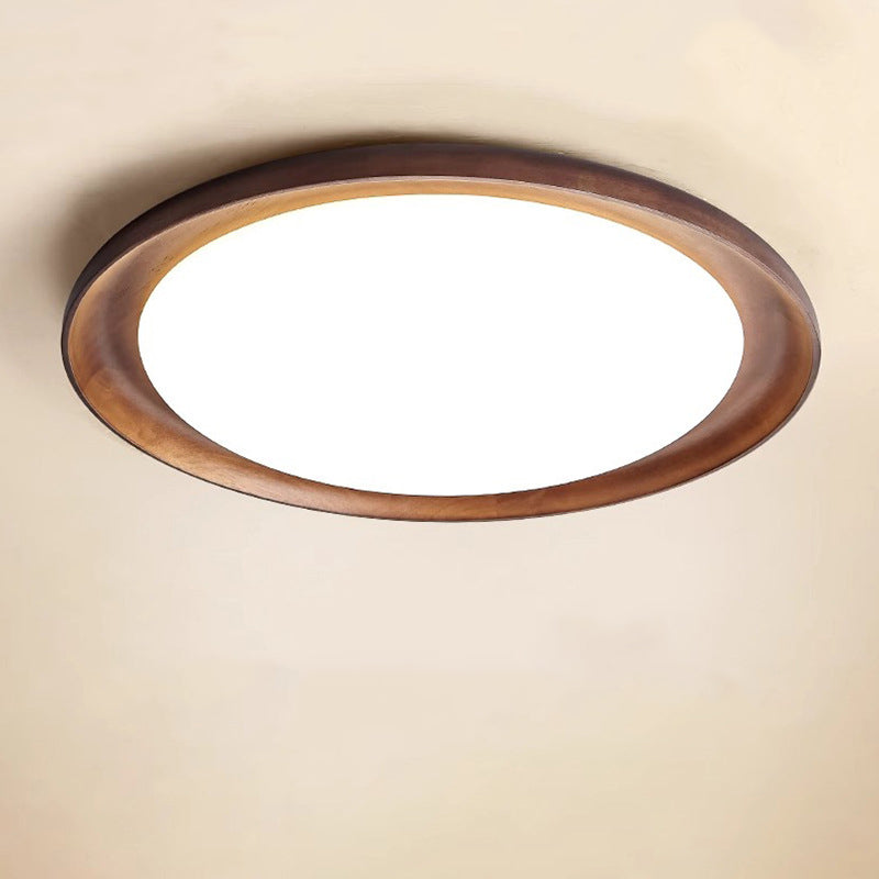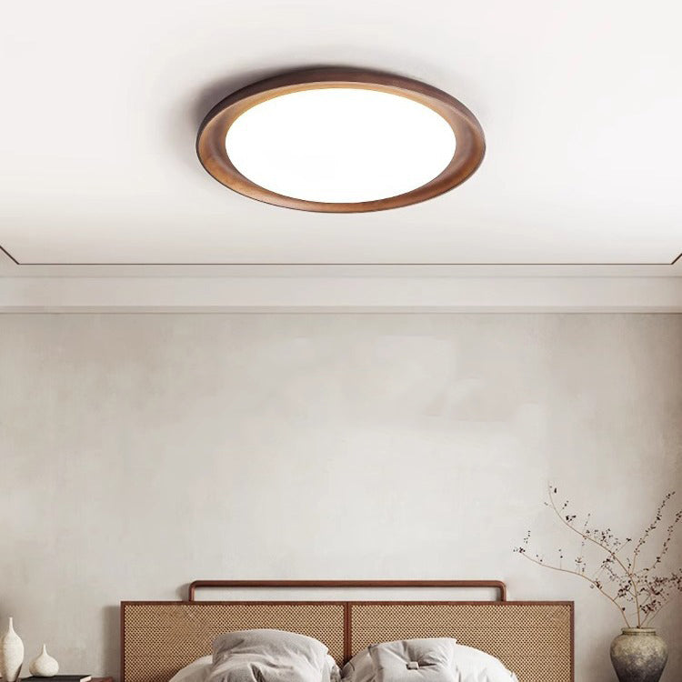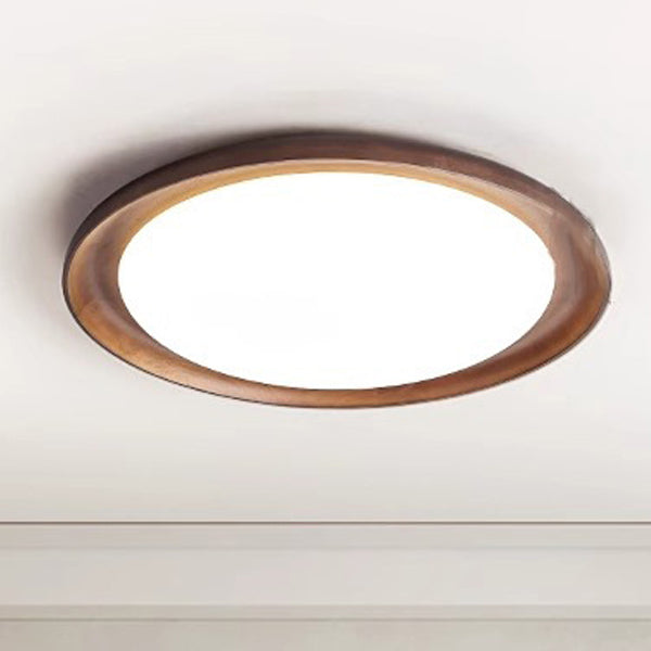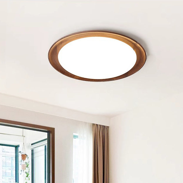 Modern Minimalist Round Walnut Wood Acrylic LED Flush Mount Ceiling Light For Living Room