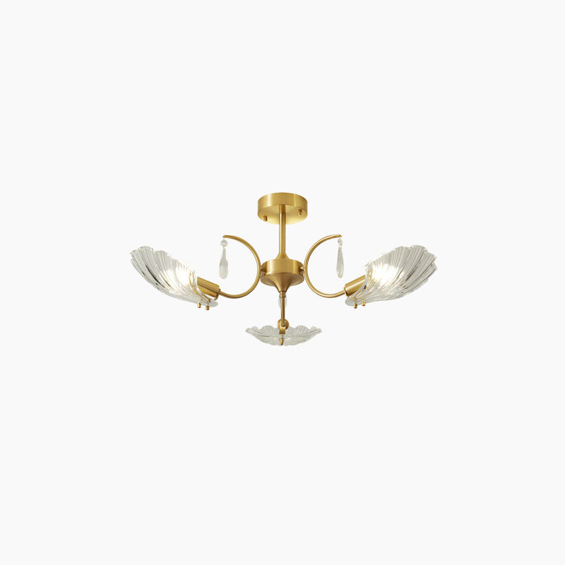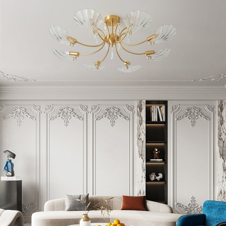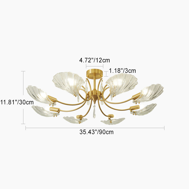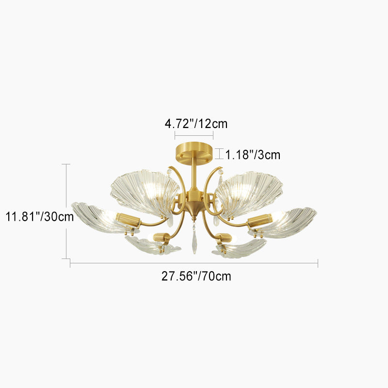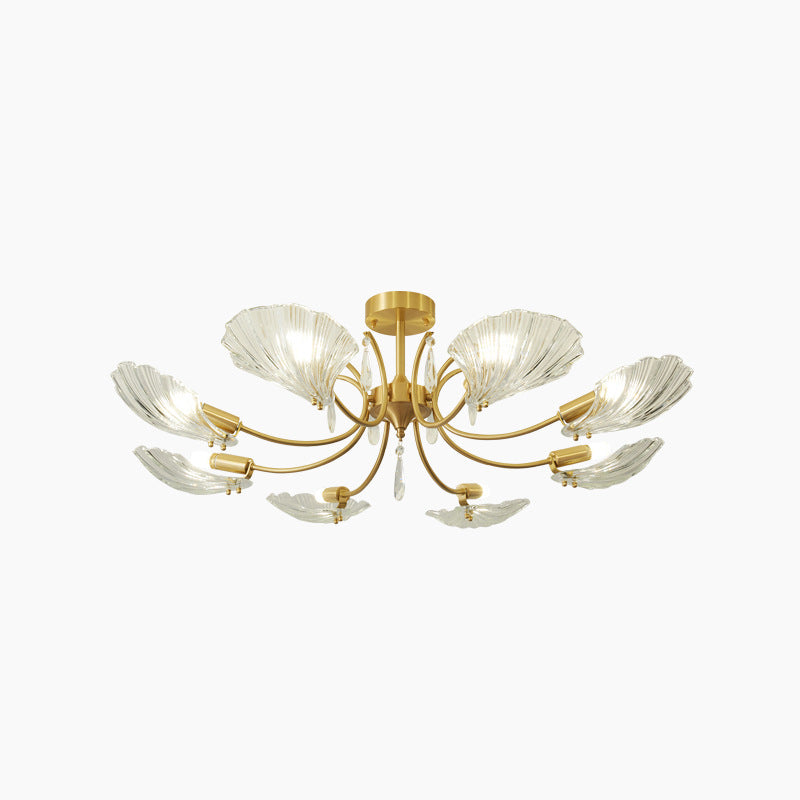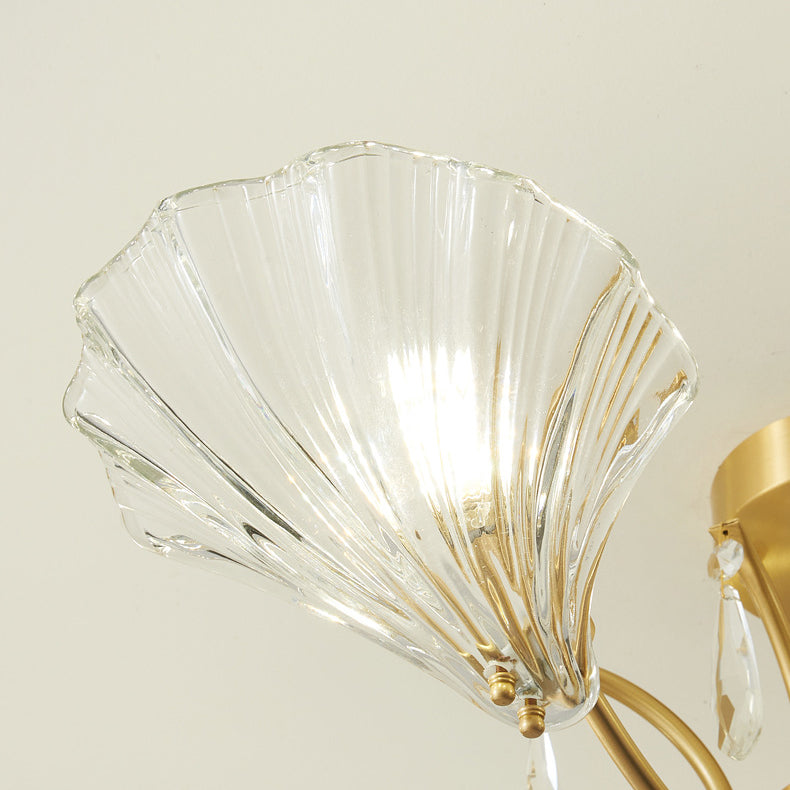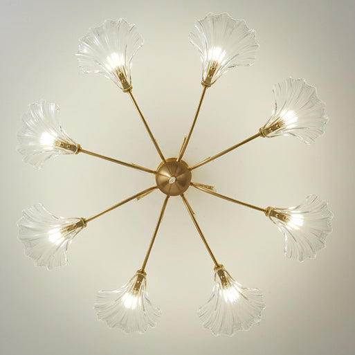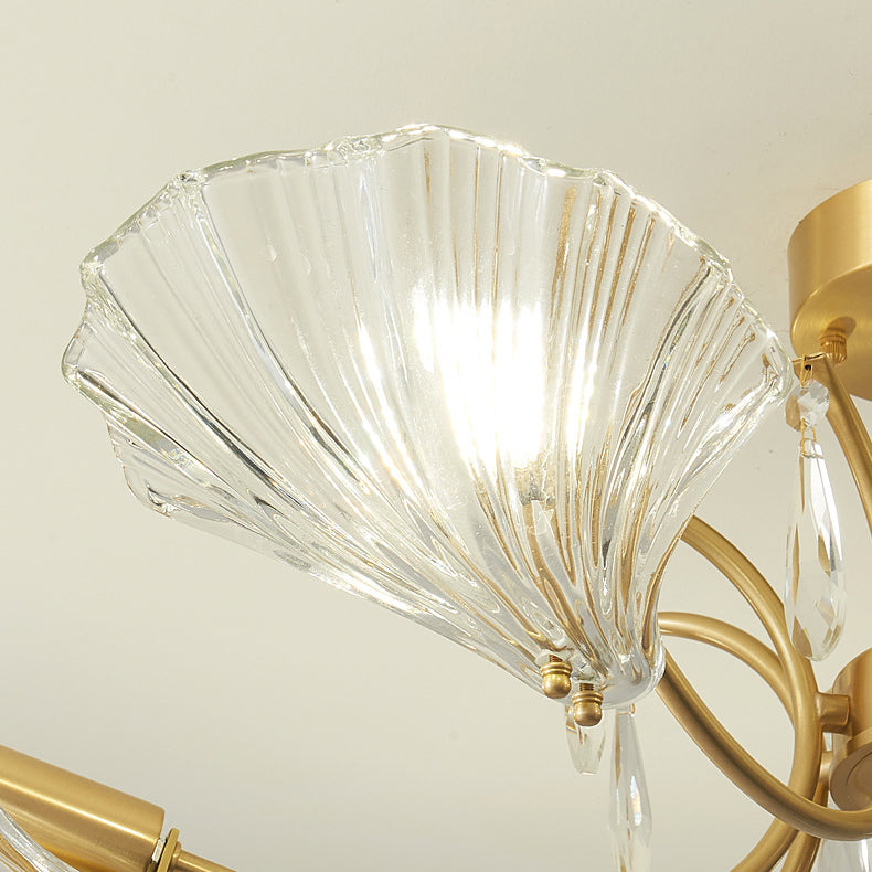 Modern Minimalist Shell Copper Glass 3/6/8 Light Chandelier For Living Room