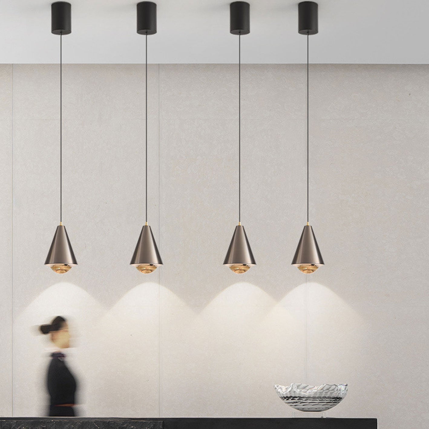 Modern Minimalist Solid Color Free Lift Conical 1-Light Pendant Light