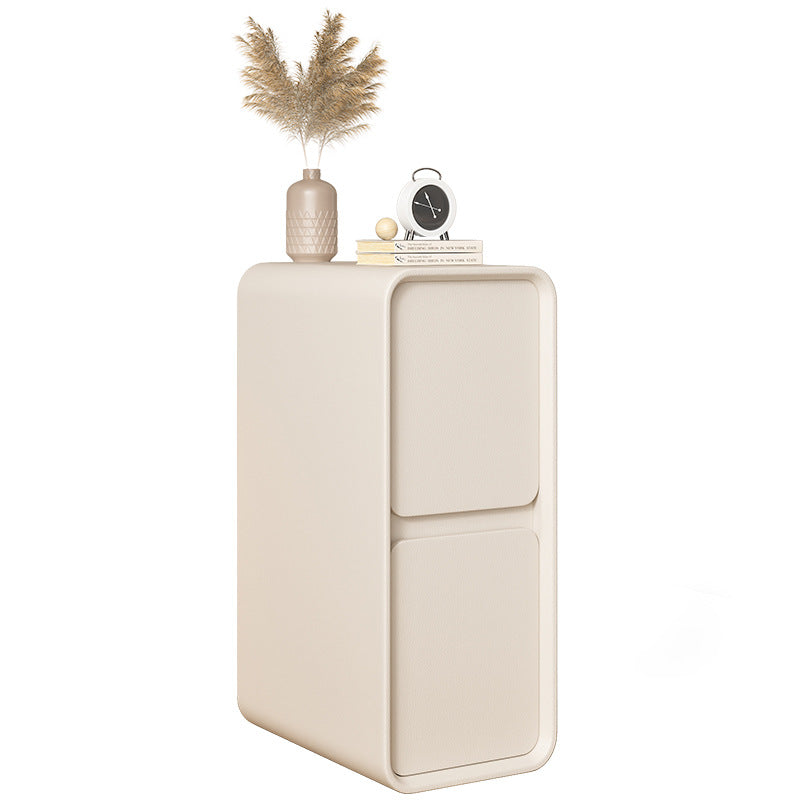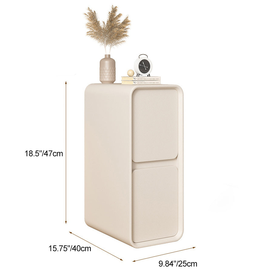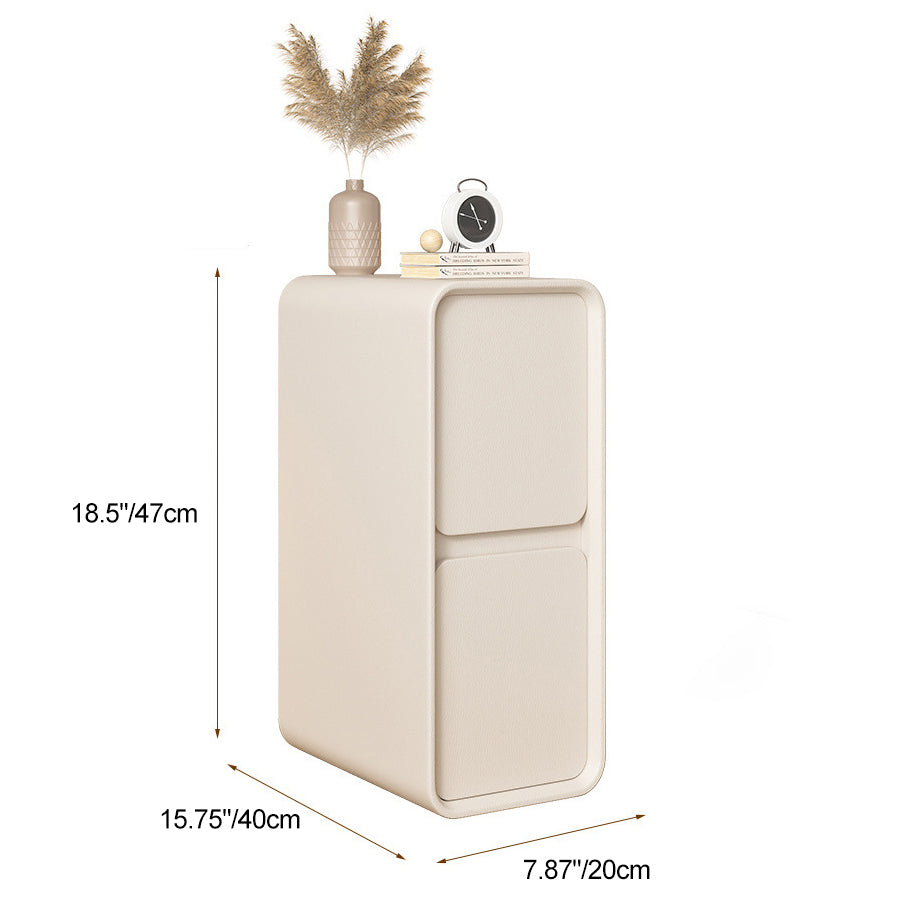 This modern minimalist rectangular nightstand features a compact design with two spacious drawers, crafted from solid wood and microfiber leather. Available in white, beige, gray, khaki, green, and pink, it's perfect for bedside storage while saving floor space.