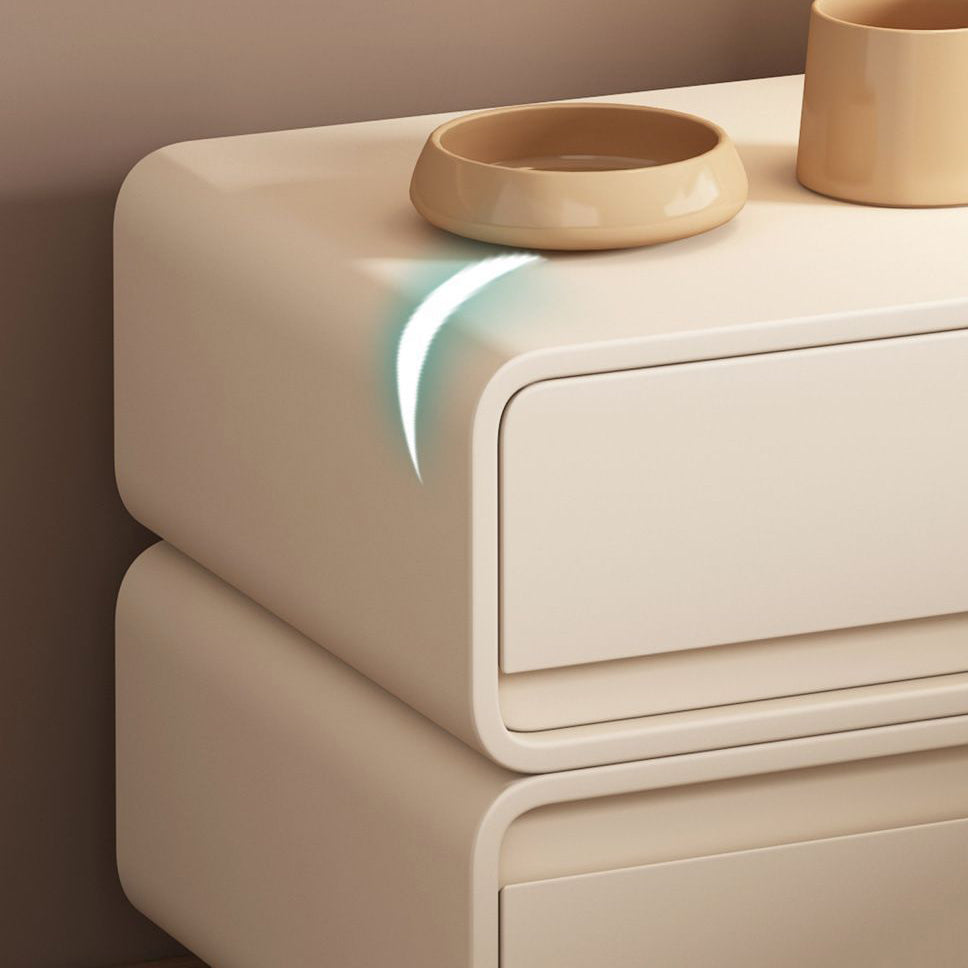 Modern Minimalist Solid Wood And Microfiber Leather Rectangular Nightstand 2 Drawers For Bedroom