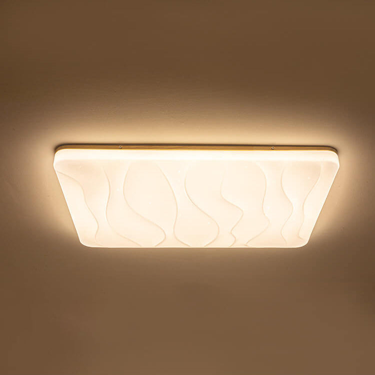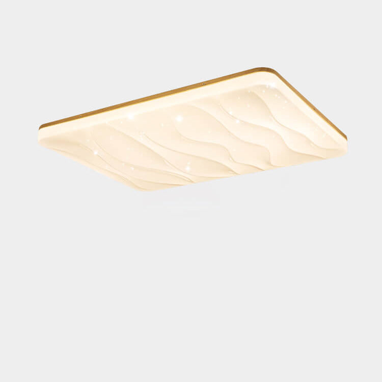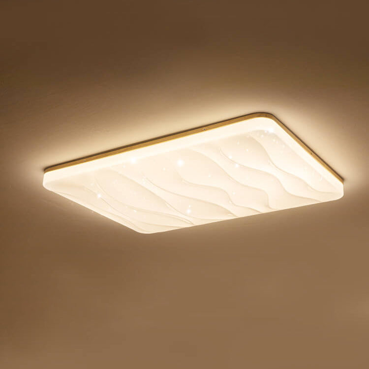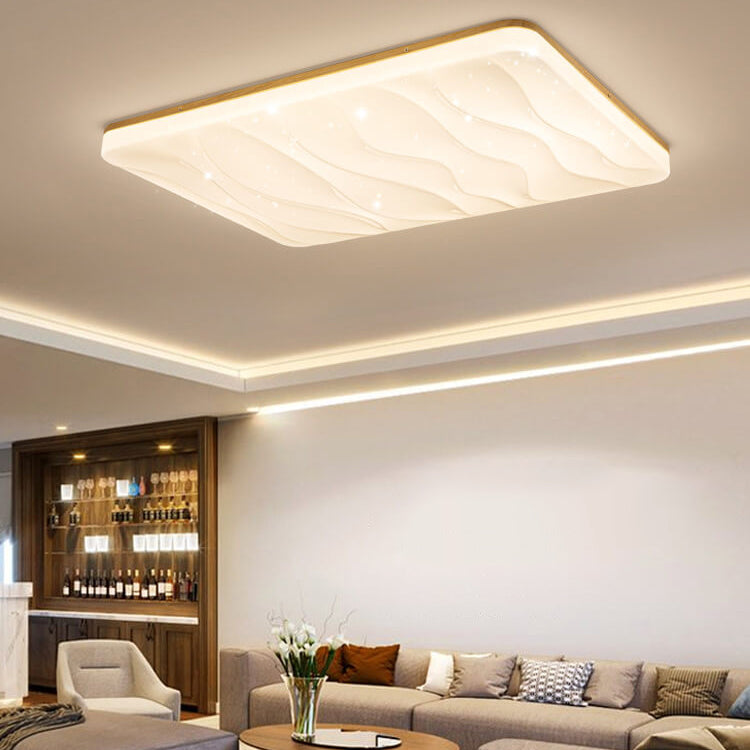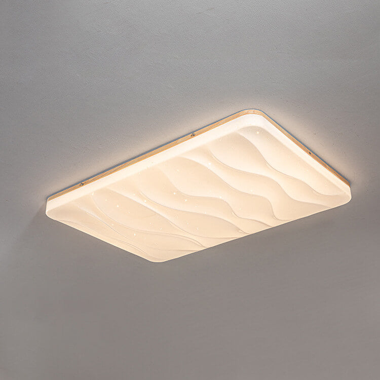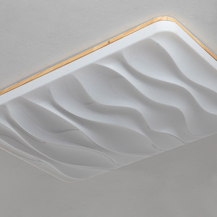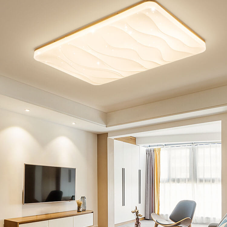 Modern Minimalist Solid Wood Edging PVC Rectangular Shade LED Flush Mount Ceiling Light For Living Room