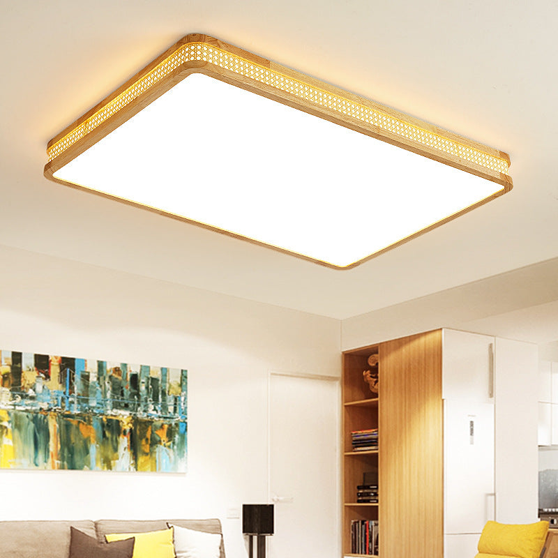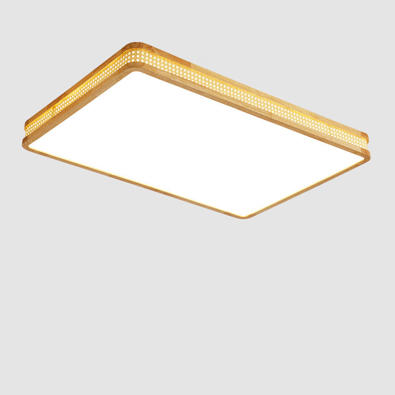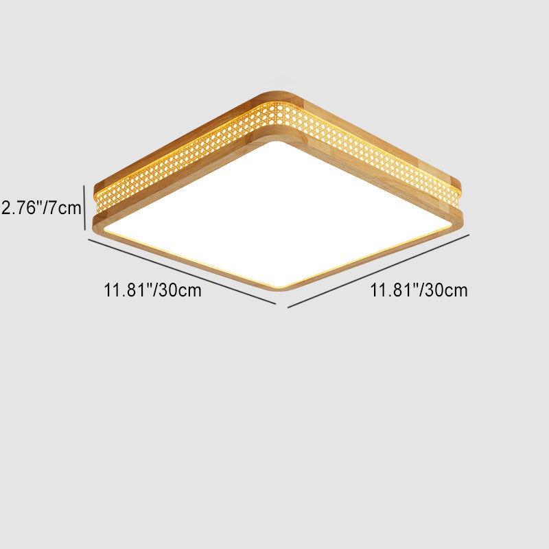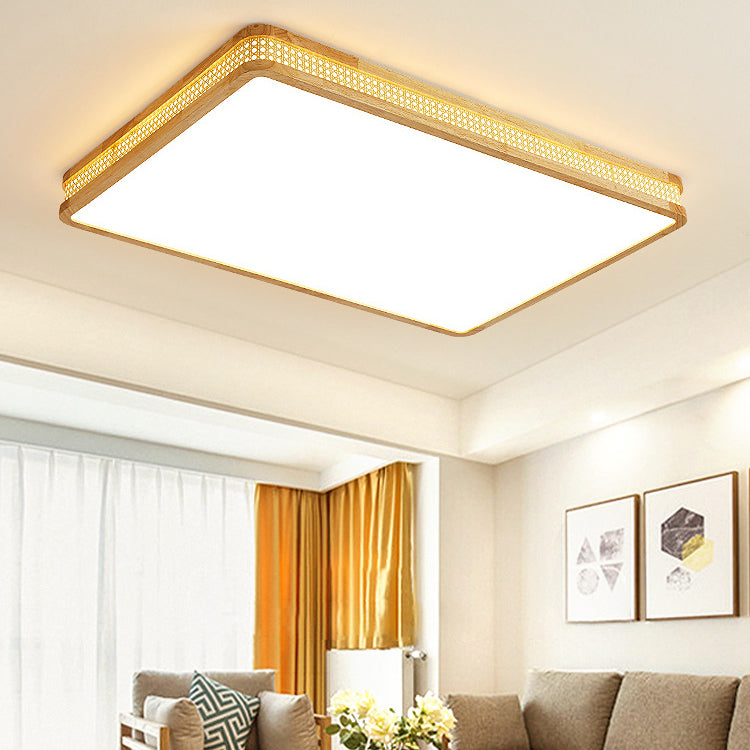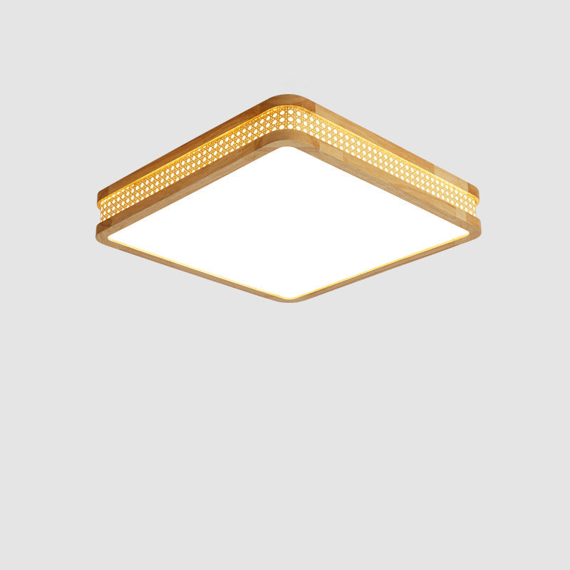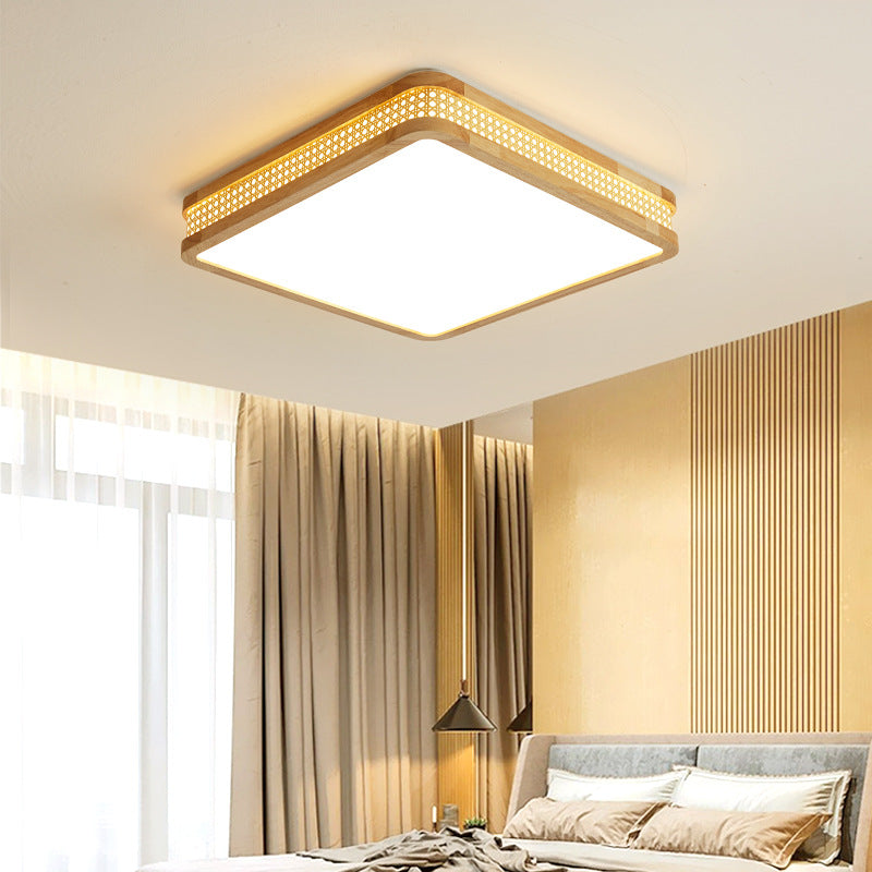 Modern Minimalist Square Acrylic Wood LED Flush Mount Ceiling Light For Bedroom