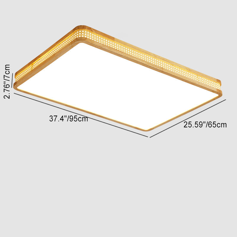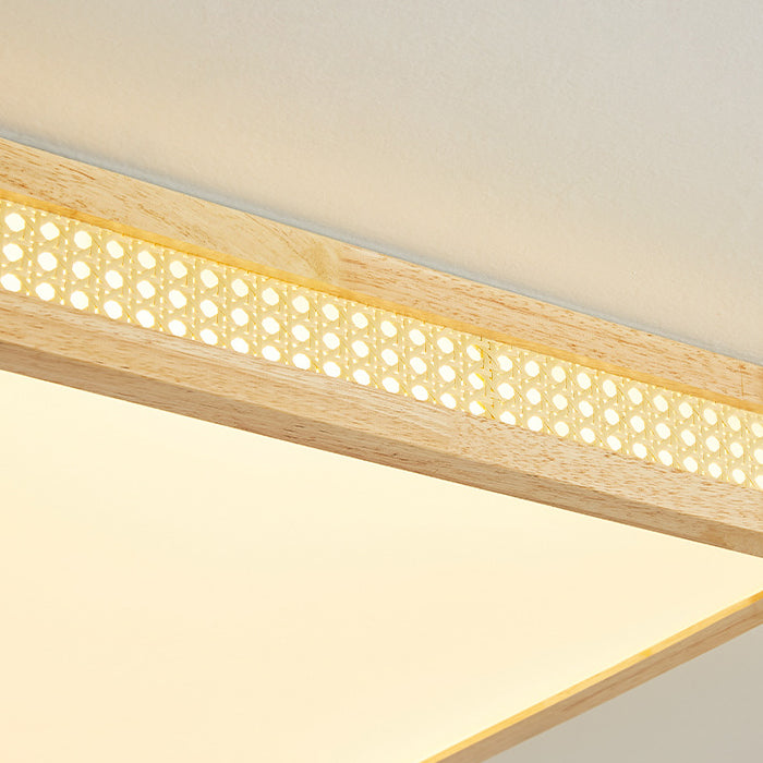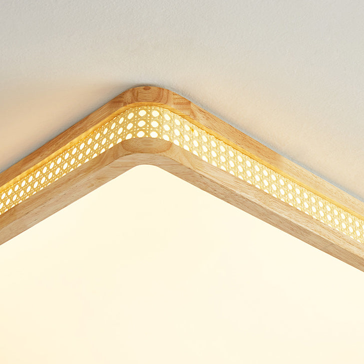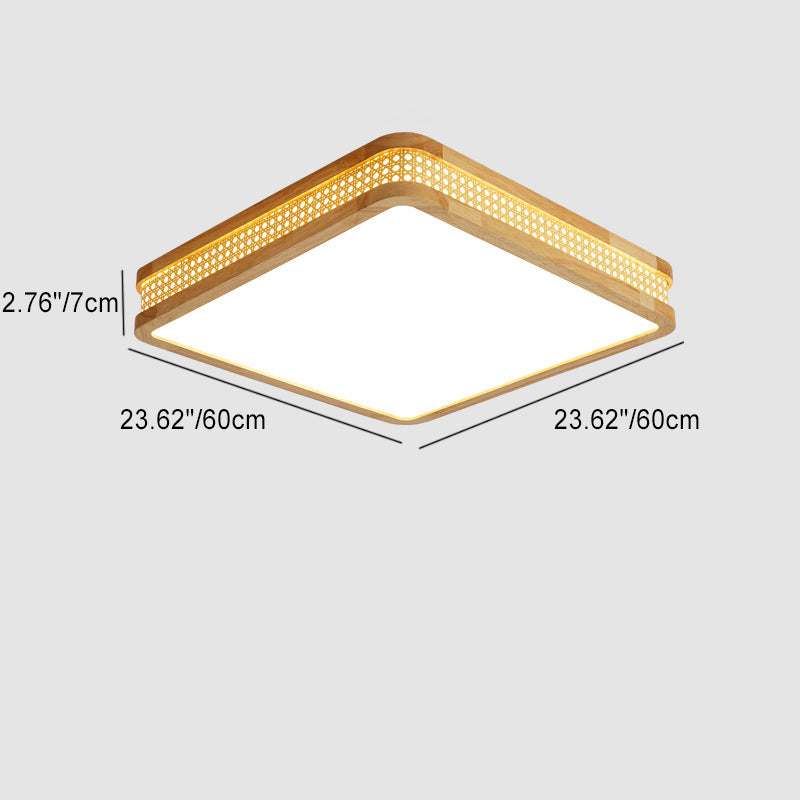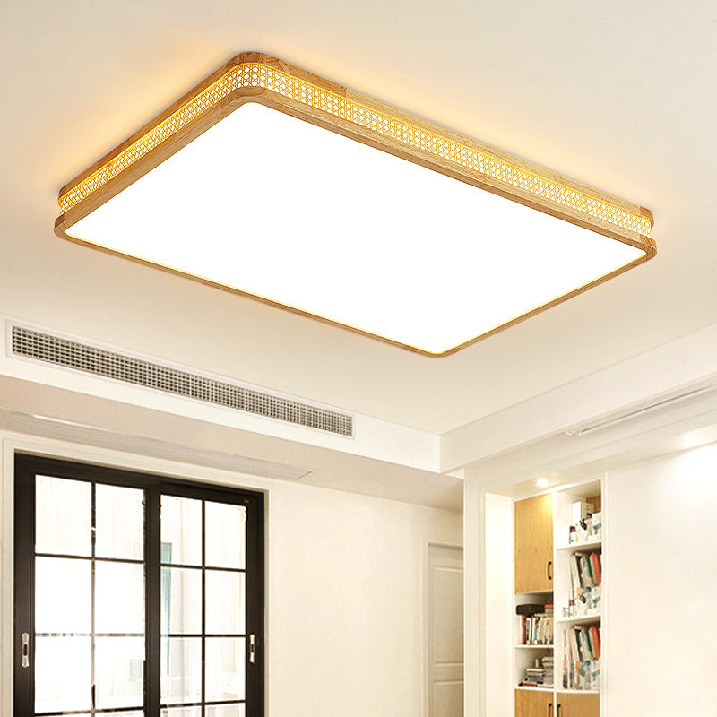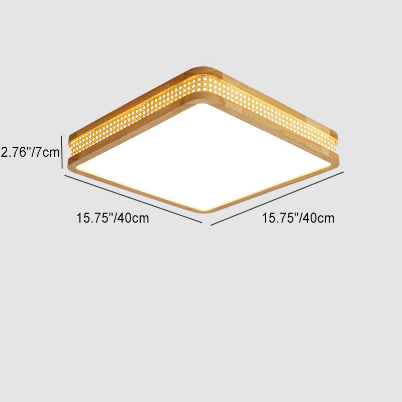 Modern Minimalist Square Acrylic Wood LED Flush Mount Ceiling Light For Bedroom