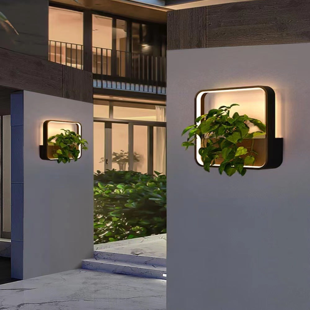 Modern Minimalist Square Geometric Frame Outdoor Waterproof LED Wall Sconce Lamp For Garden