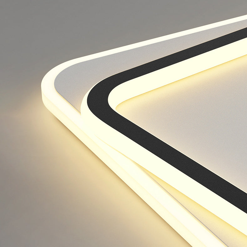 Modern Minimalist Square Line Iron Aluminium Acrylic LED Flush Mount Ceiling Light For Bedroom