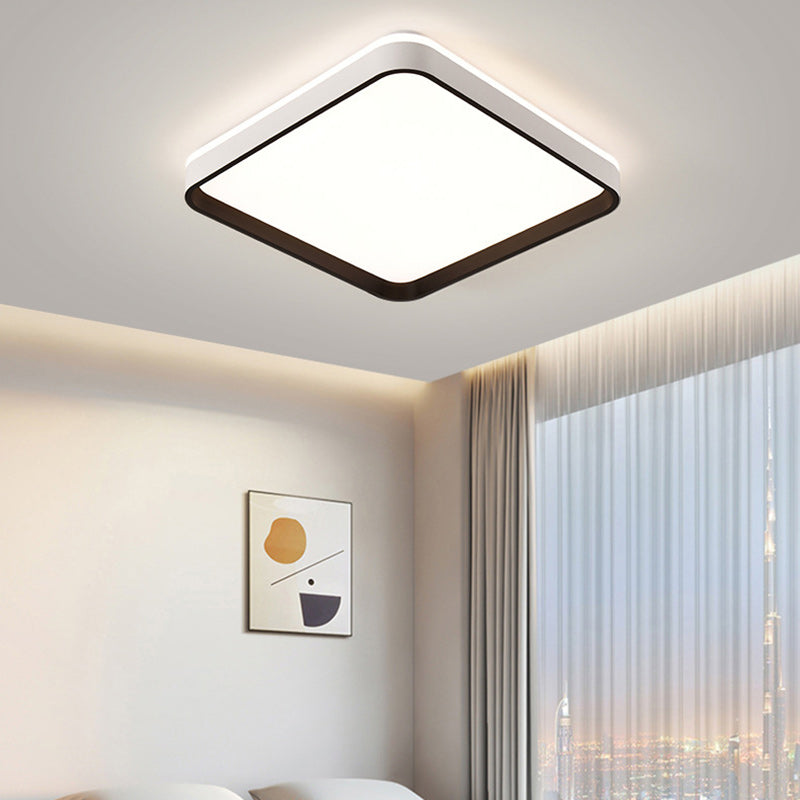 Modern Minimalist Square Roto-molding Hardware Lampshade LED Flush Mount Ceiling Light For Bedroom