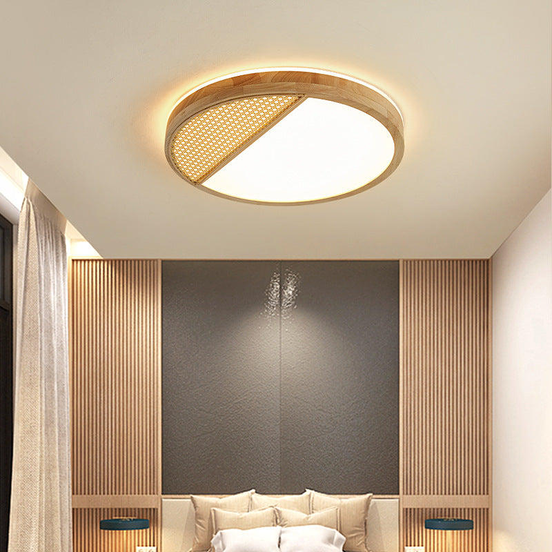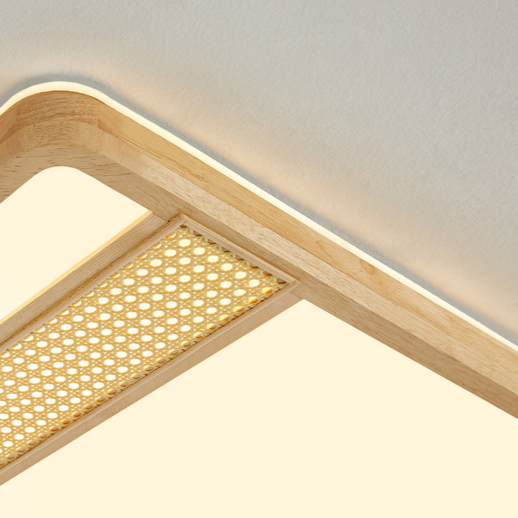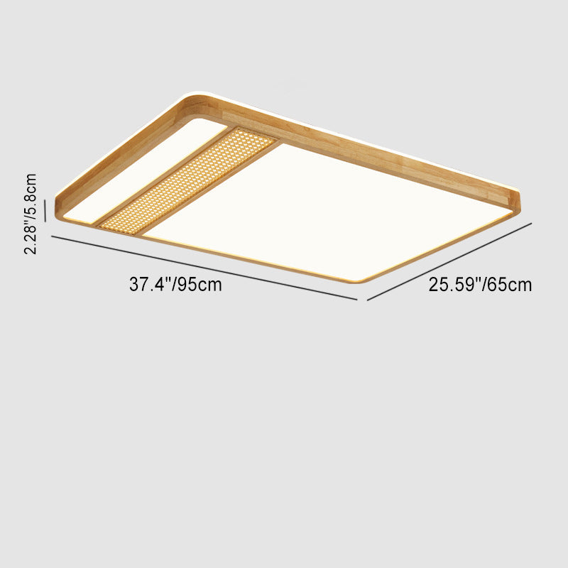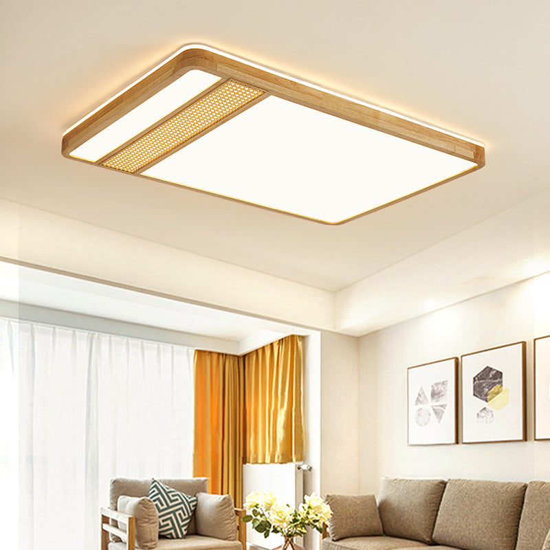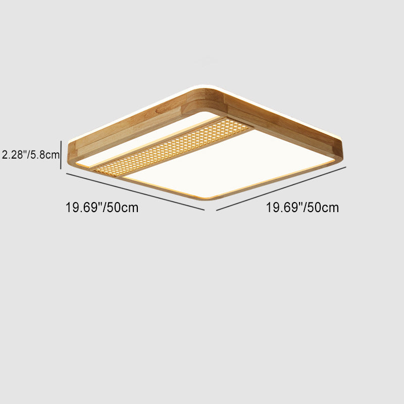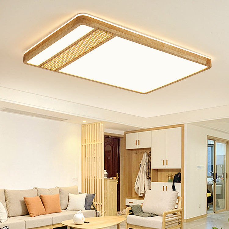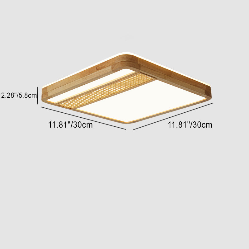 Modern Minimalist Square Solid Wood Acrylic LED Flush Mount Ceiling Light For Living Room
