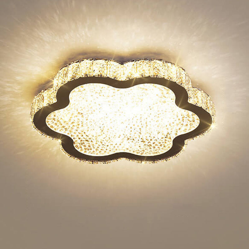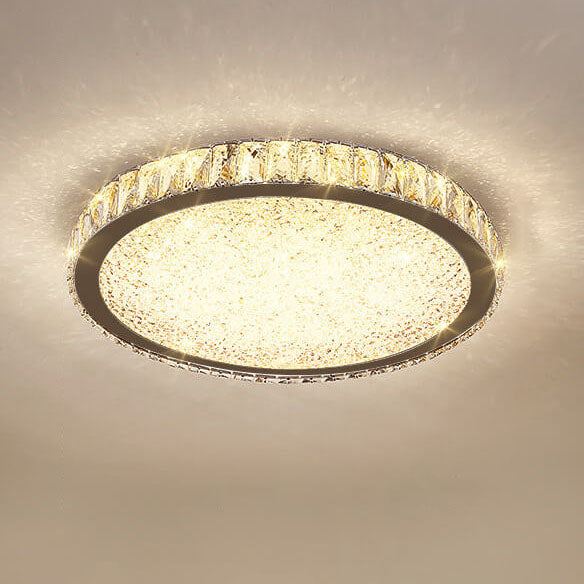 Modern Minimalist Stainless Steel Crystal LED Flush Mount Ceiling Light
