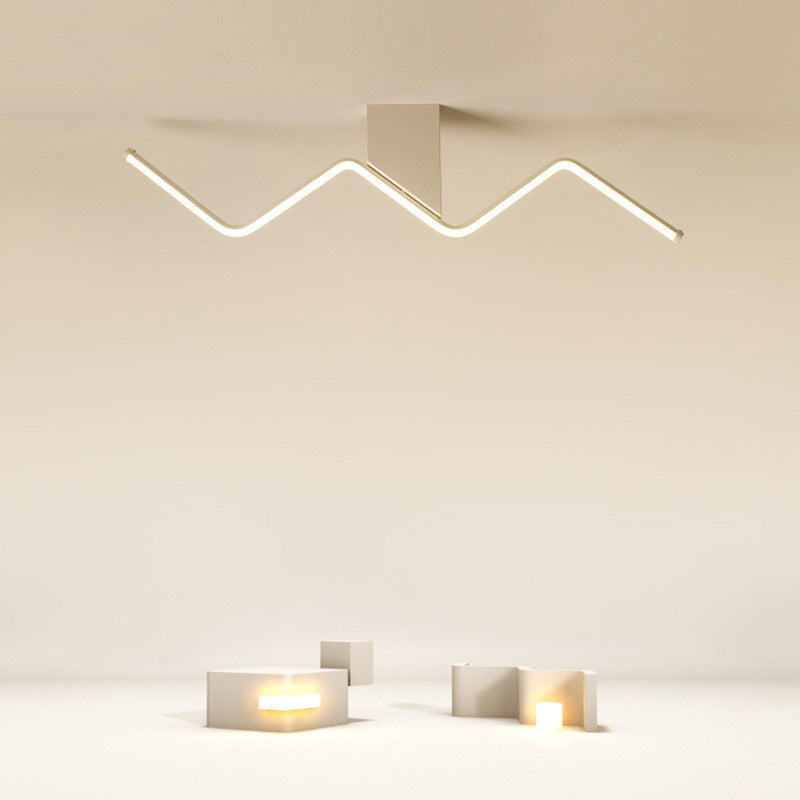 Modern Minimalist Straight Line Aluminum Iron Silicone LED Flush Mount Ceiling Light For Living Room