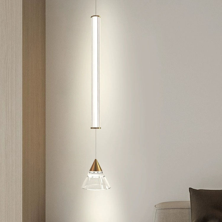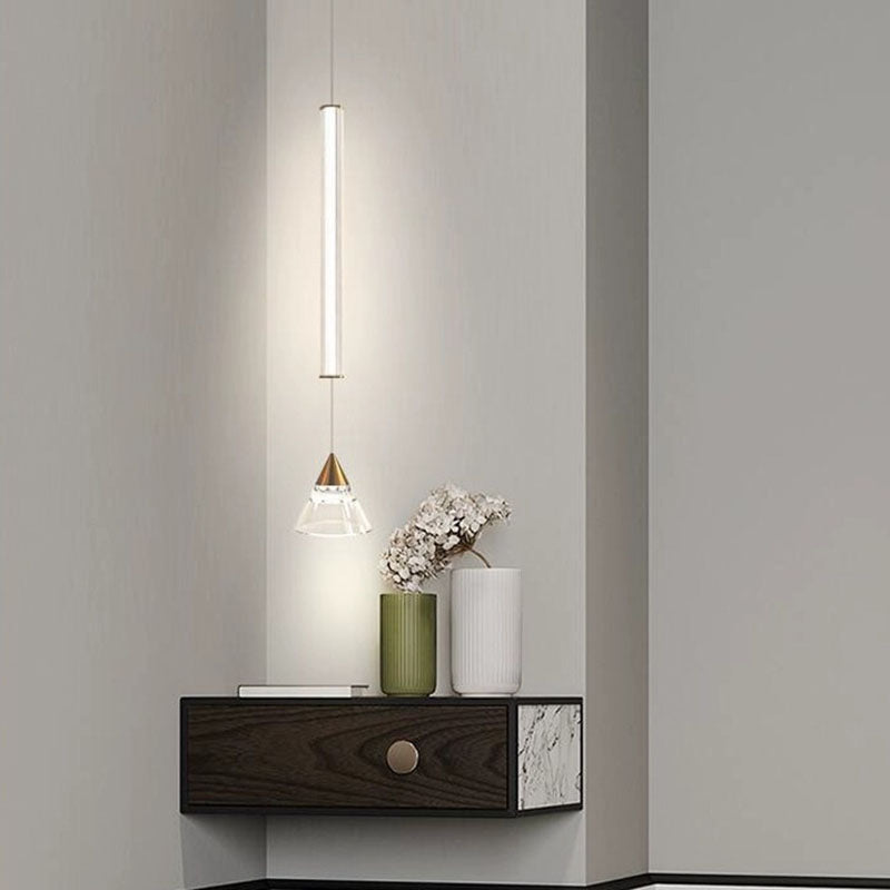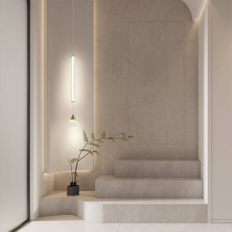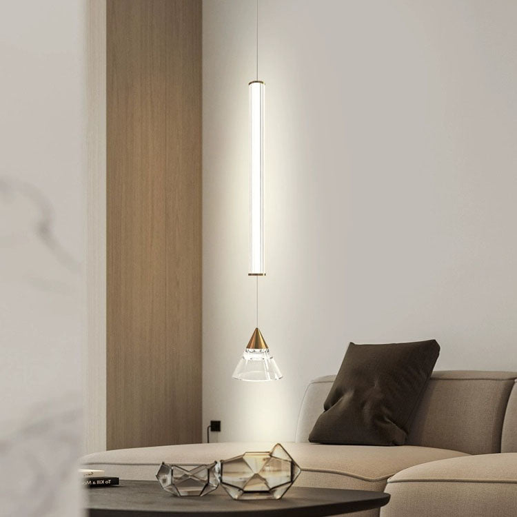 Modern Minimalist Straight Line Iron Glass LED Pendant Light For Living Room