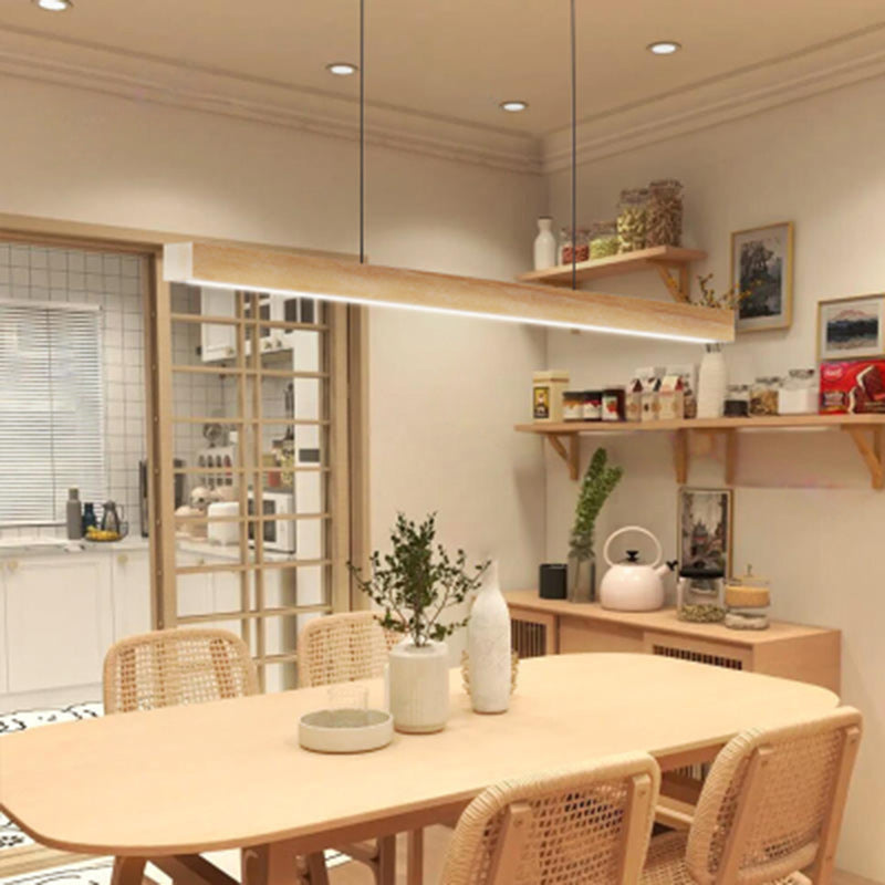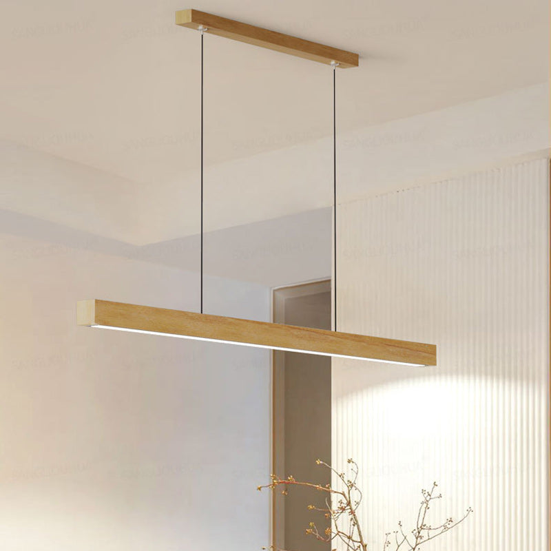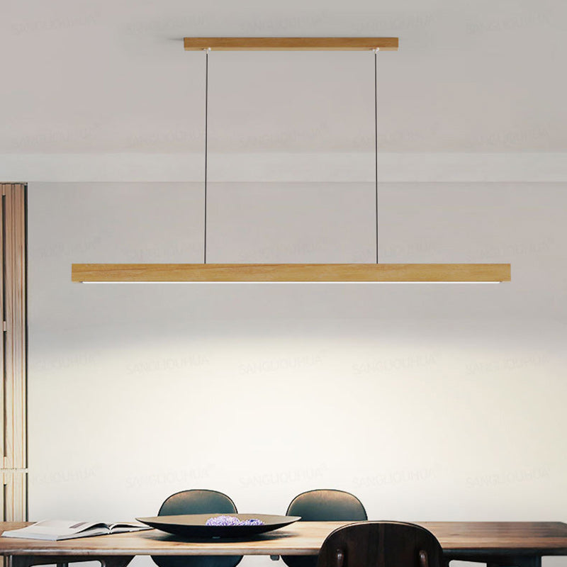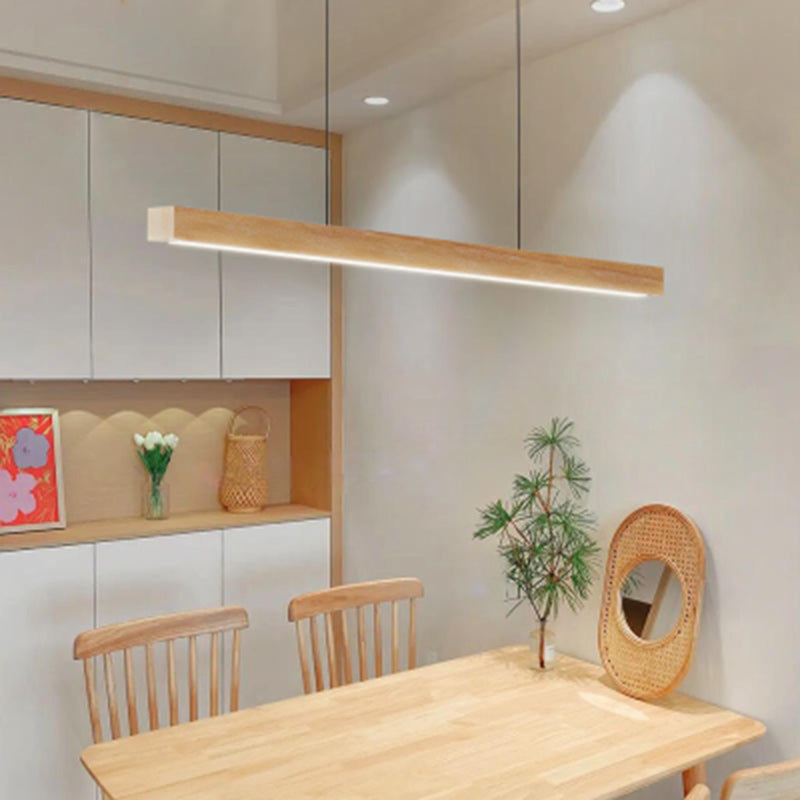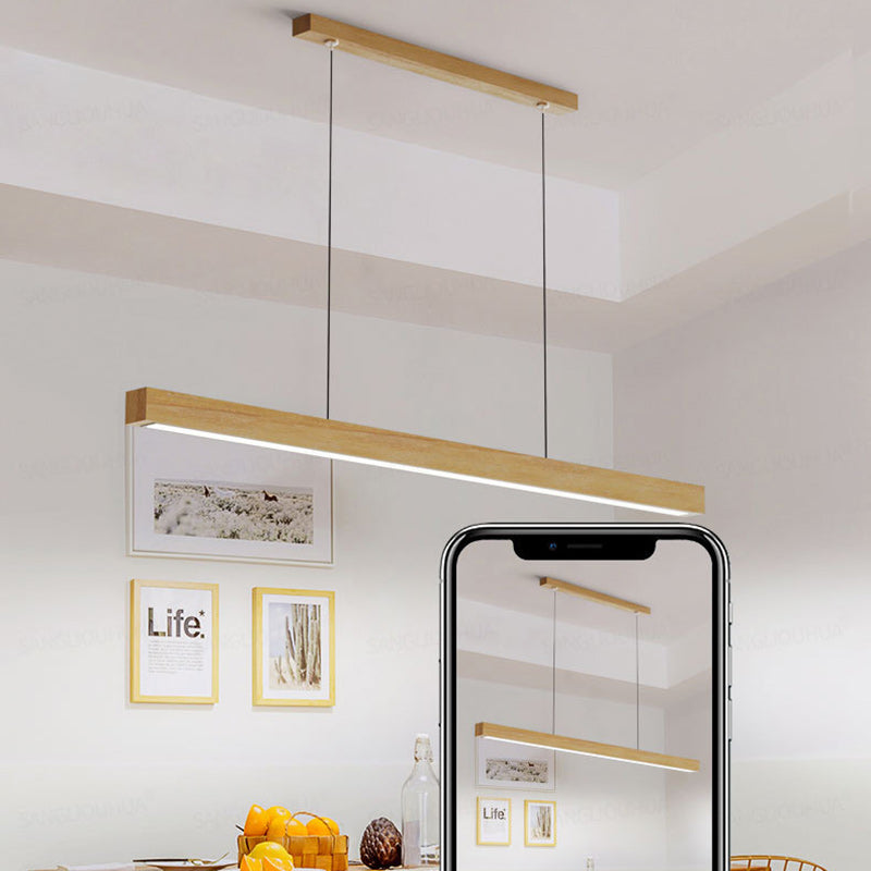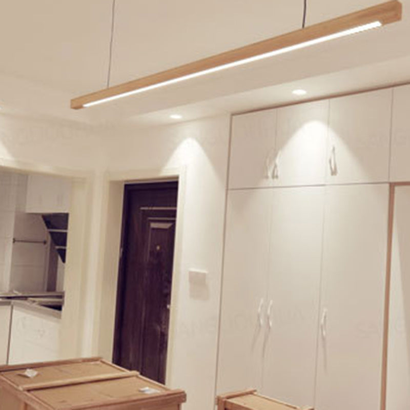 Modern Minimalist Straight Line Wood LED Island Light Pendant Light For Dining Room