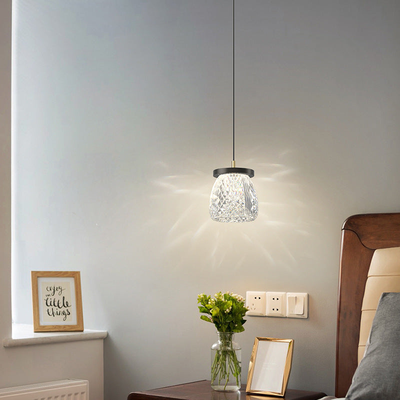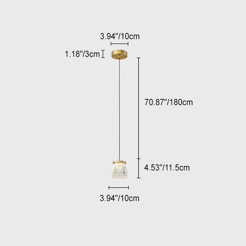 Modern Minimalist Trapezoidal Copper Acrylic LED Pendant Light For Bedroom