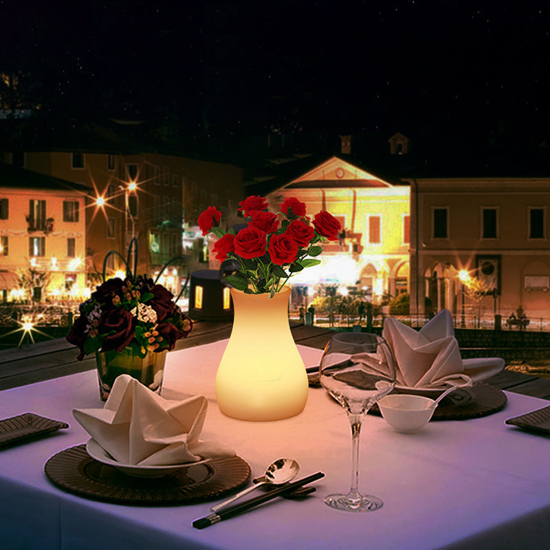Modern Minimalist USB Vase Round Cylinder Square PE Plastic LED Table Lamp For Dining Room