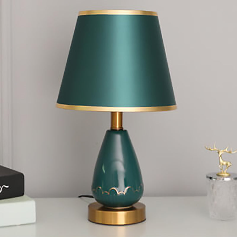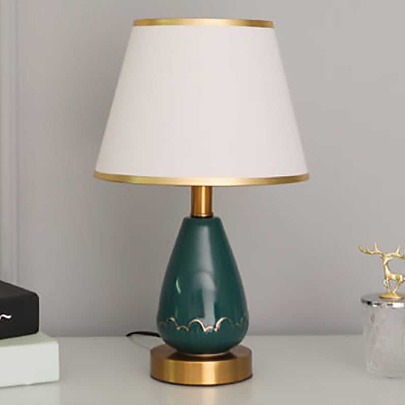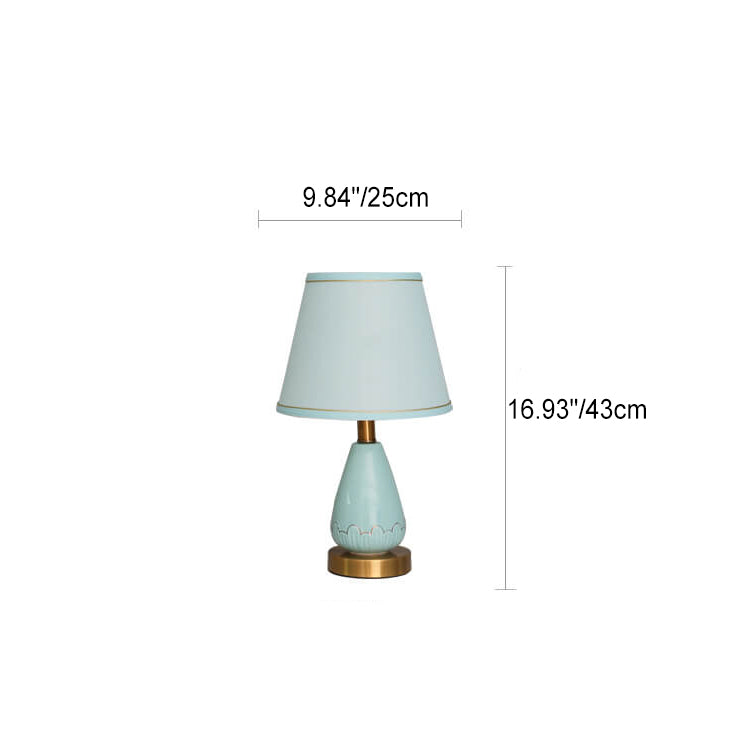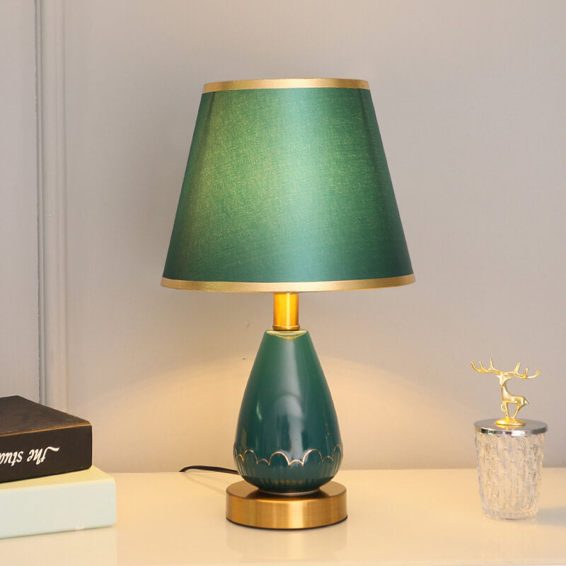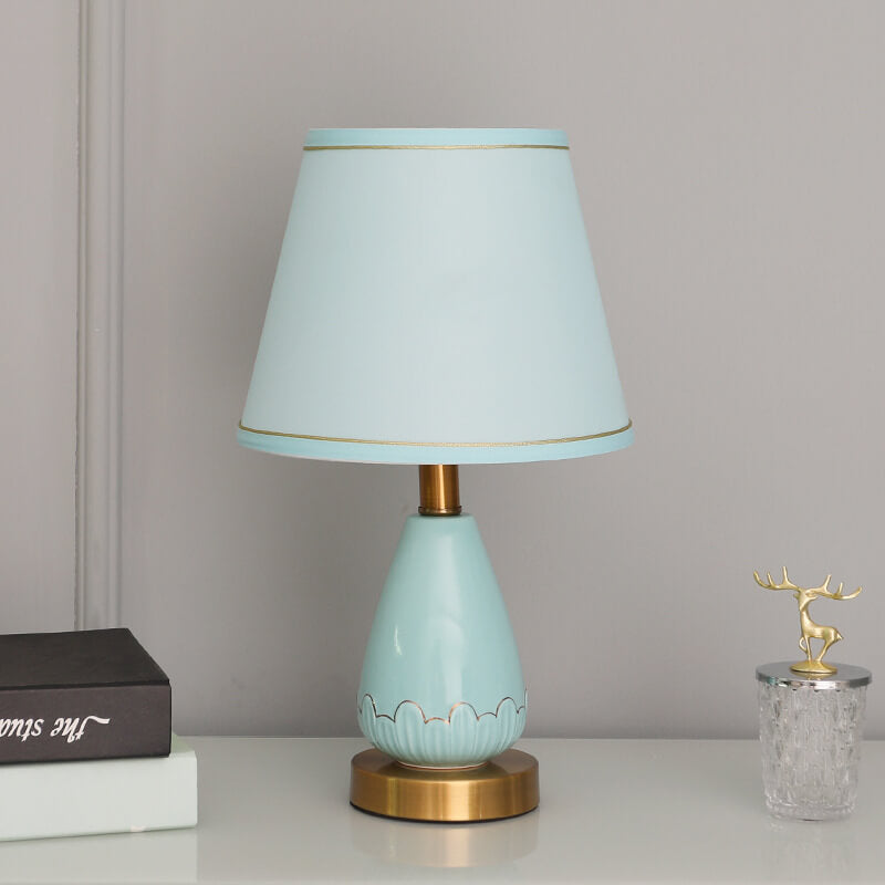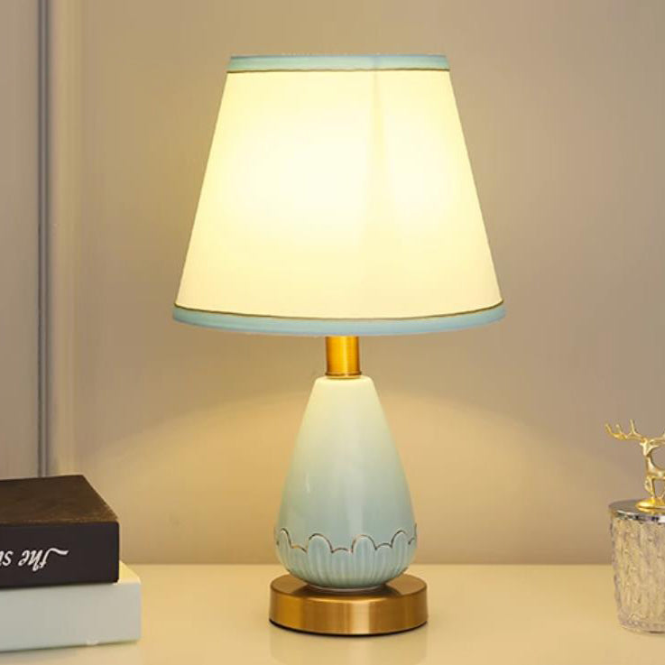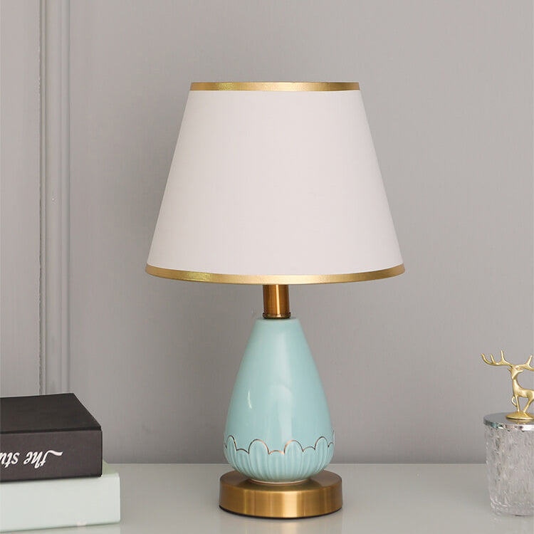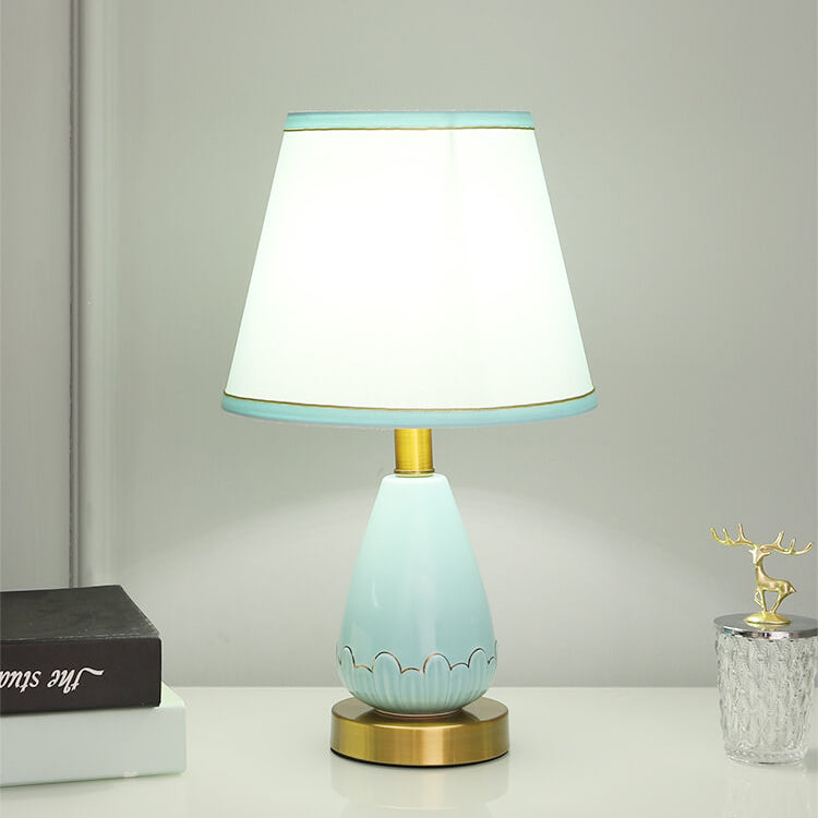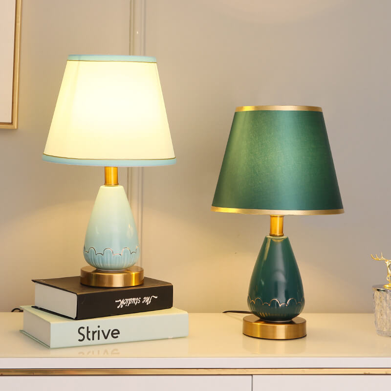 Modern Minimalist Vase Base Round Trapezoidal Ceramic Metal Fabric 1-Light Table Lamp For Bedroom