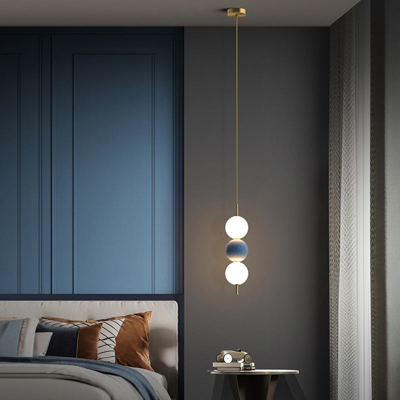 Modern Minimalist Vertical String Ball Brass Acrylic LED Pendant Light For Bedroom