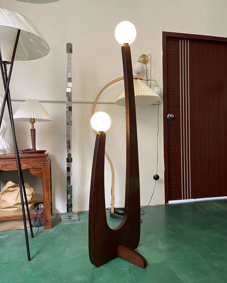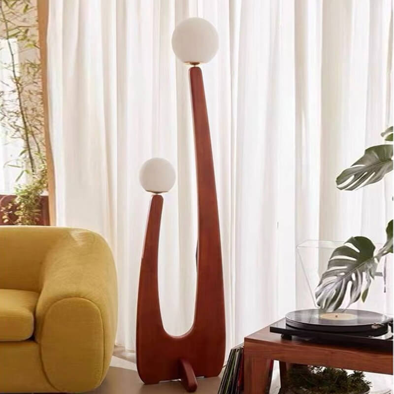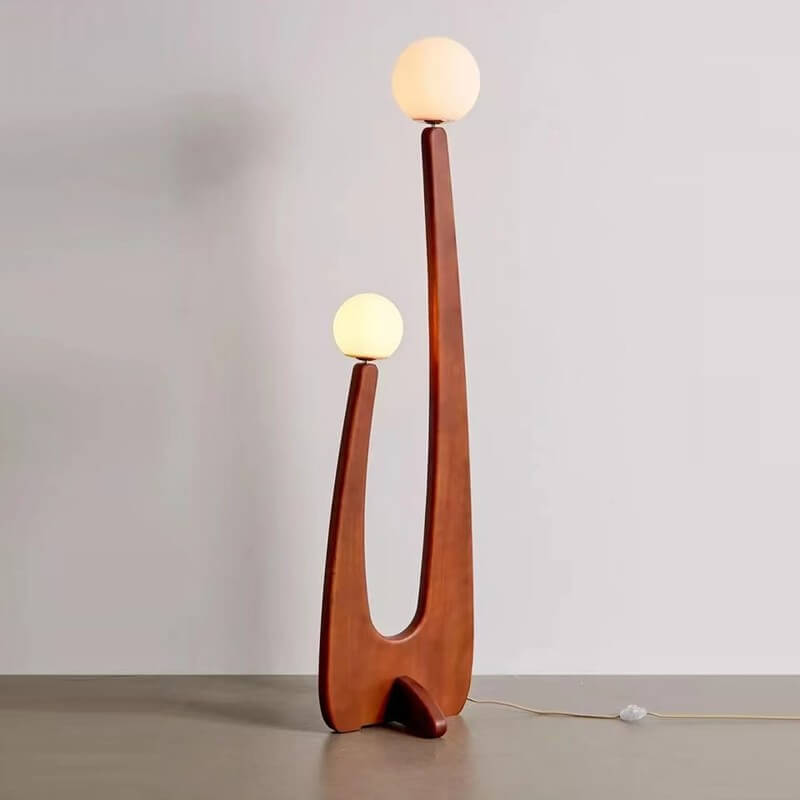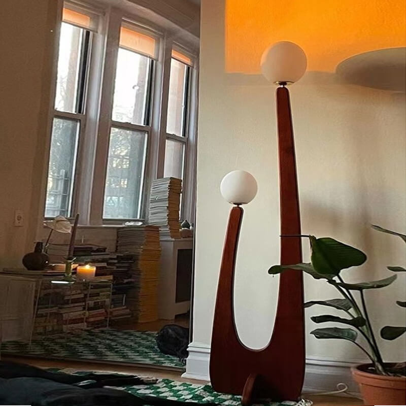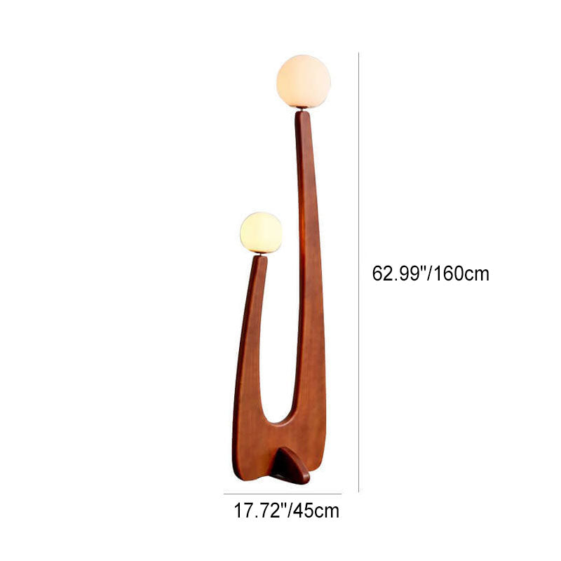 Modern Minimalist Walnut Solid Wood Glass Ball 2-Light Standing Floor Lamp