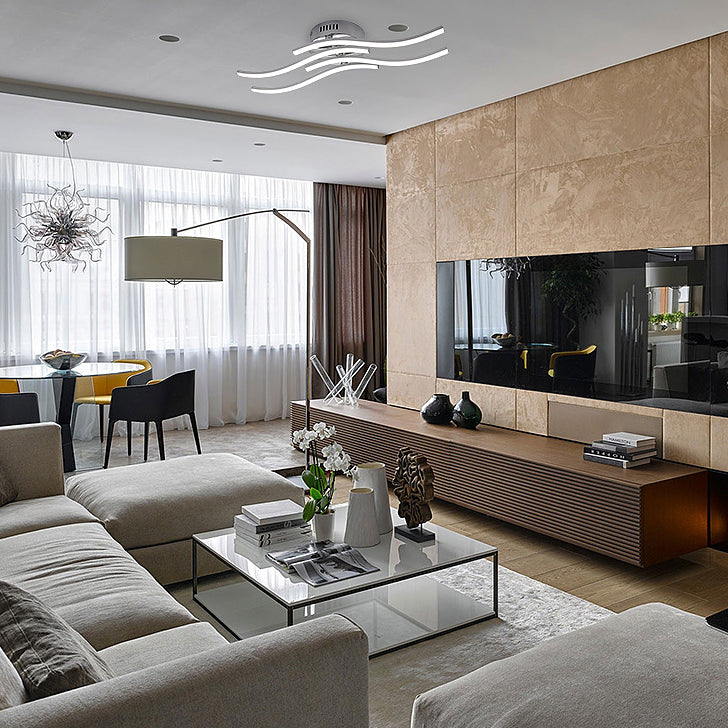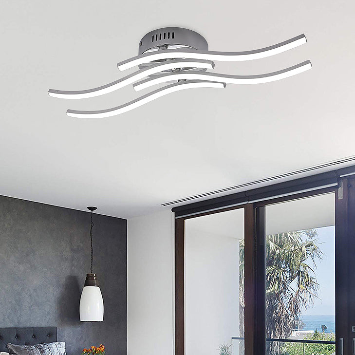 Modern Minimalist Wave Round Silicone Iron LED Semi-Flush Mount Ceiling Light For Living Room