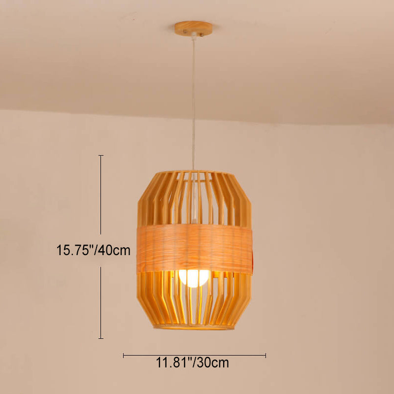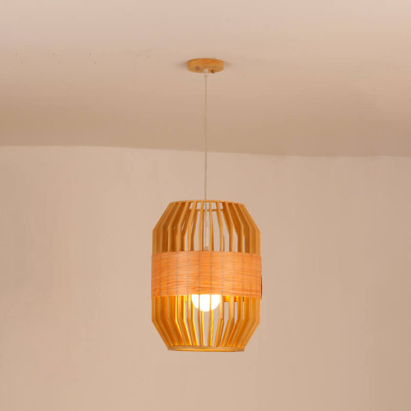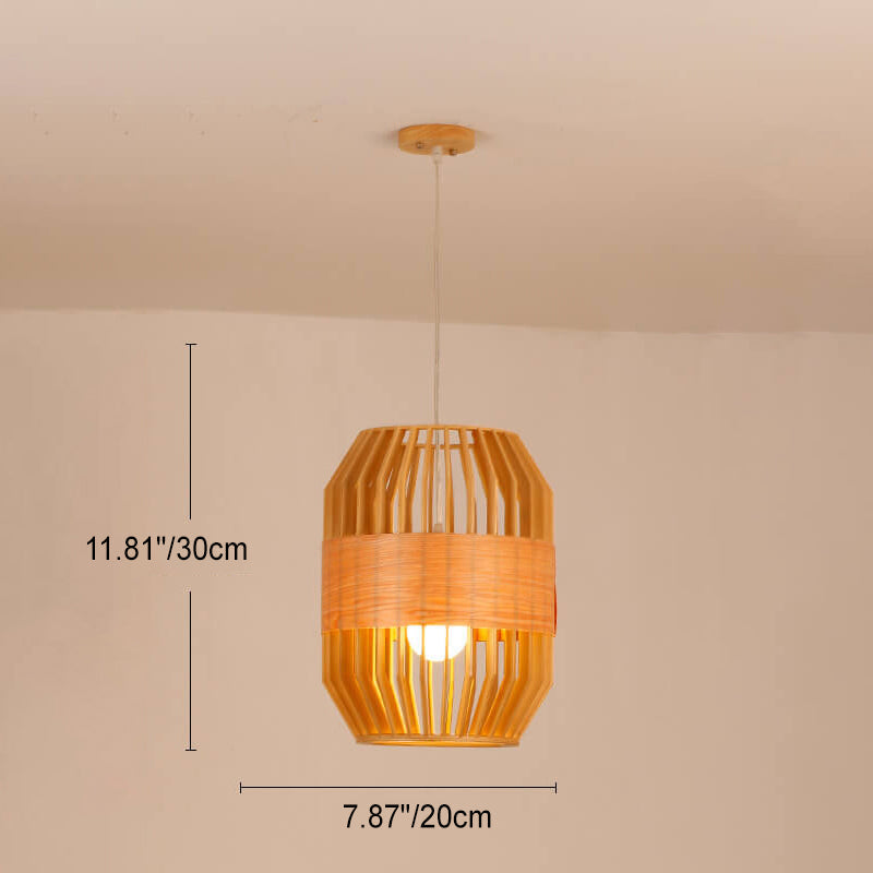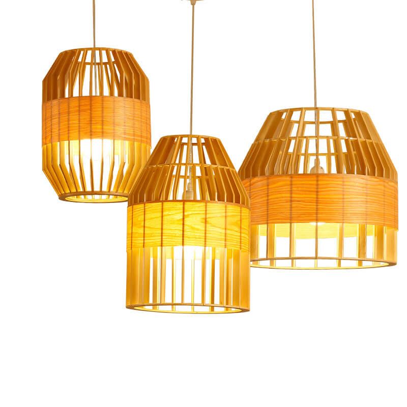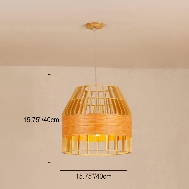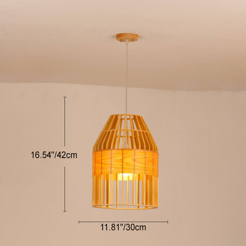 Modern Minimalist Wooden Birdcage Design 1- Light Pendant Light