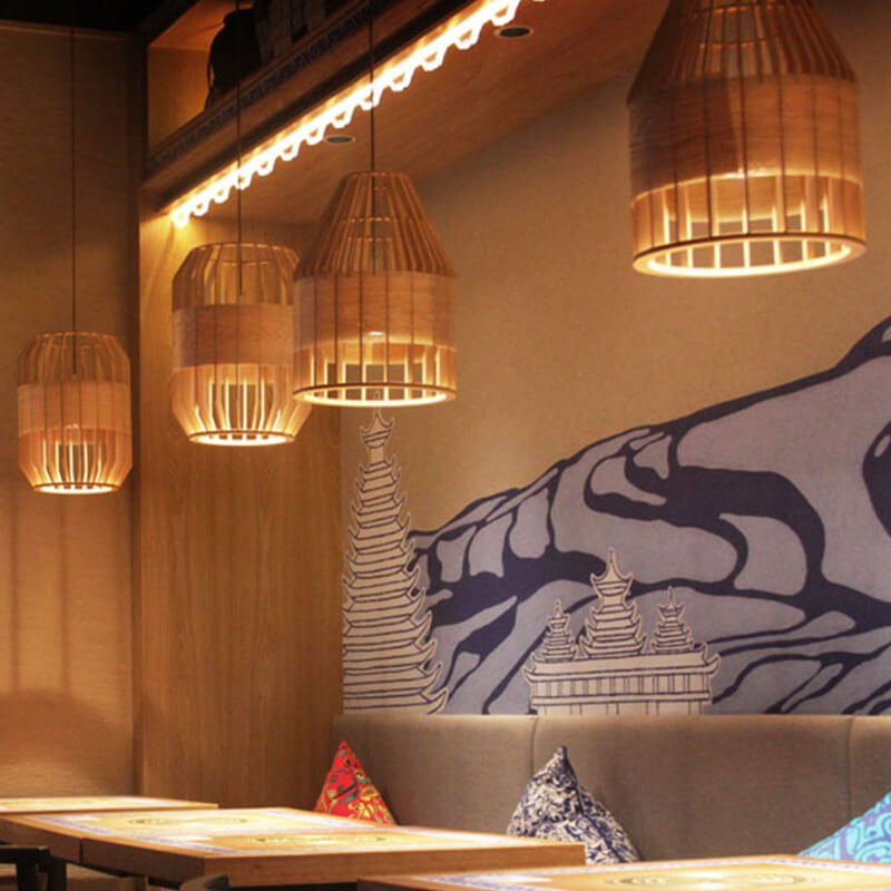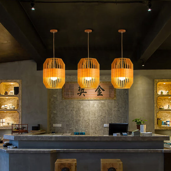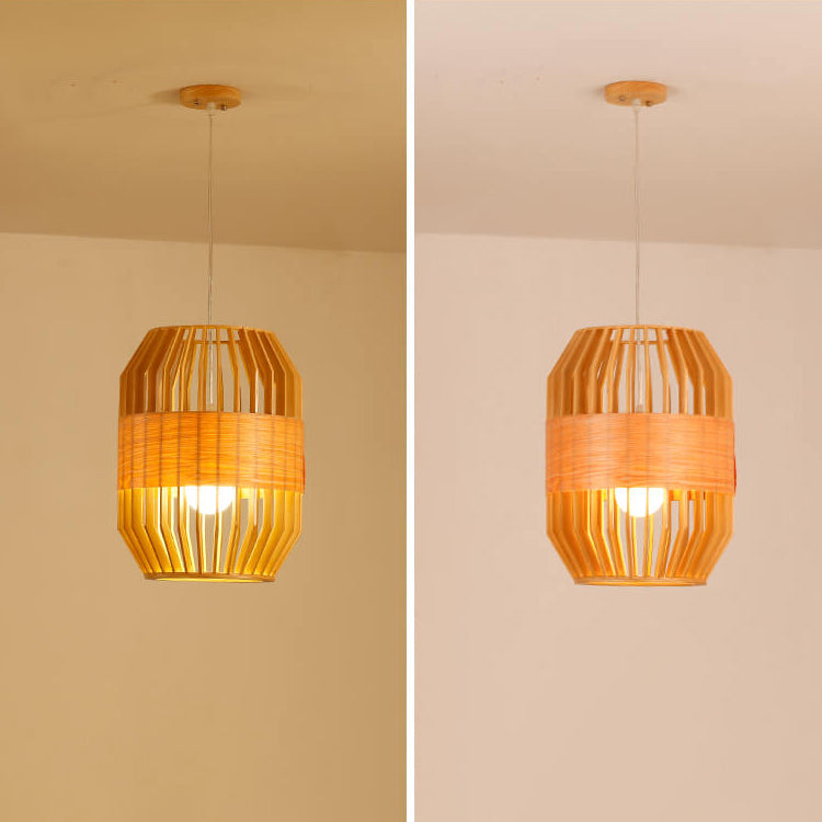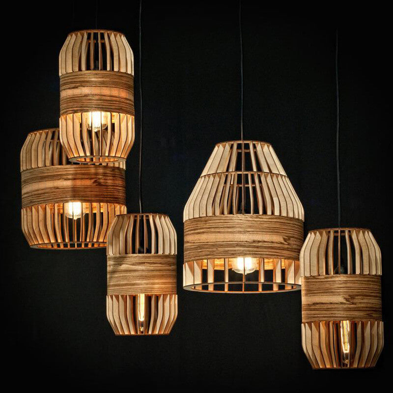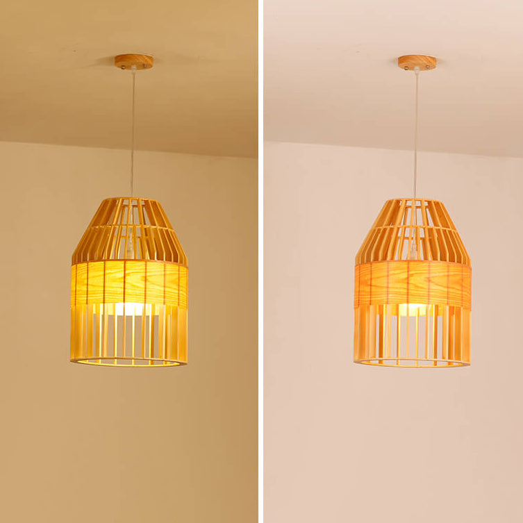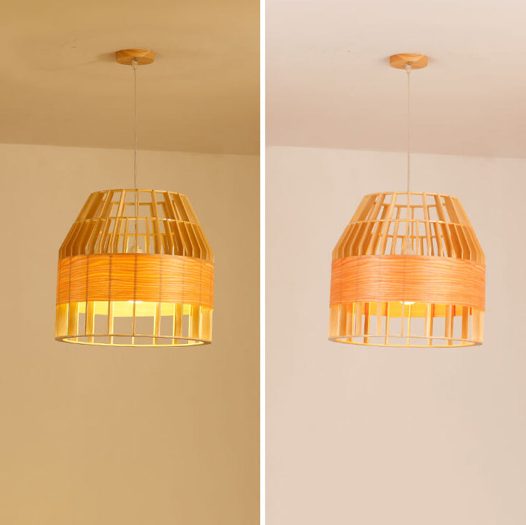 Modern Minimalist Wooden Birdcage Design 1- Light Pendant Light