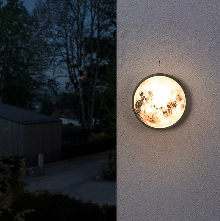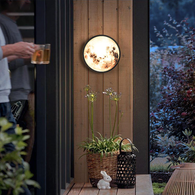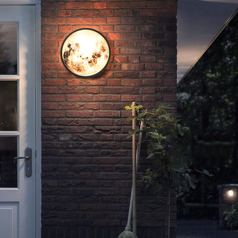 Modern Outdoor Moon Round Waterproof Wall Sconce Lamp