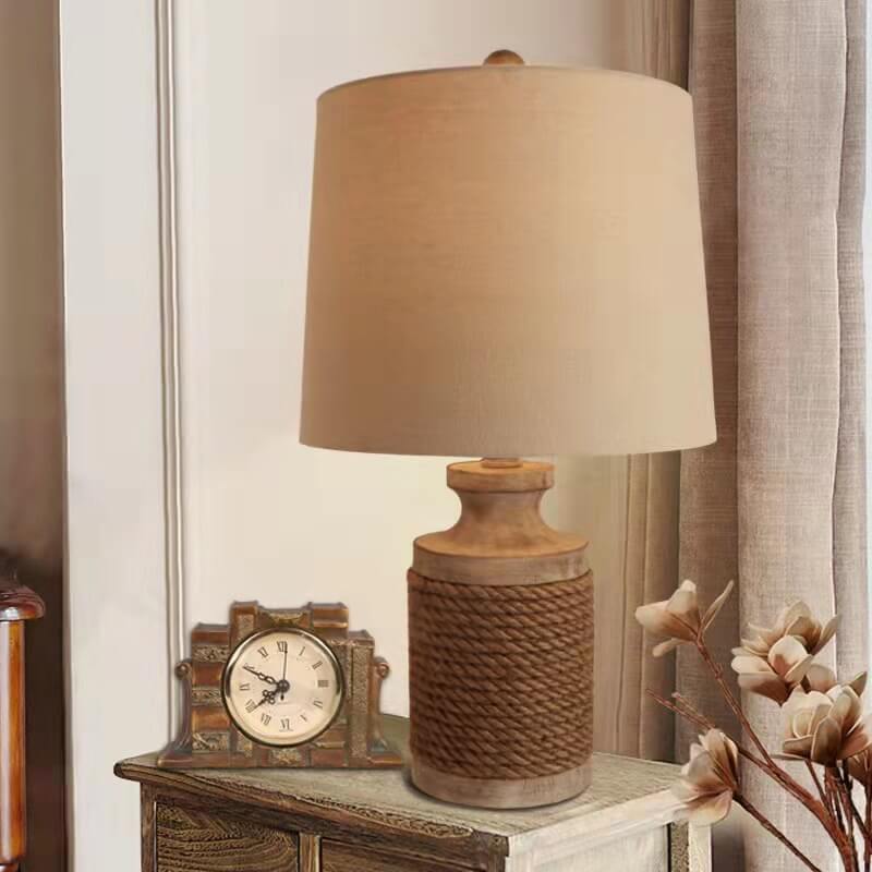 Modern Personality Creative Solid Wood Cylinder 1-Light Table Lamp
