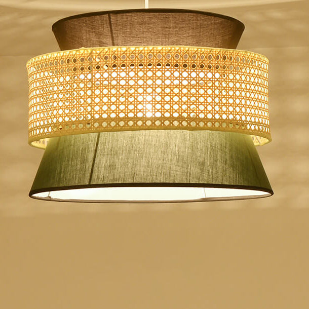Modern Rattan Japanese Drum Shape 1-Light Pendant Light