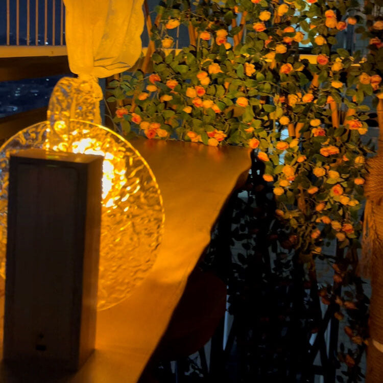 Modern Romantic Solid Wood Rotating Water Pattern LED Table Lamp
