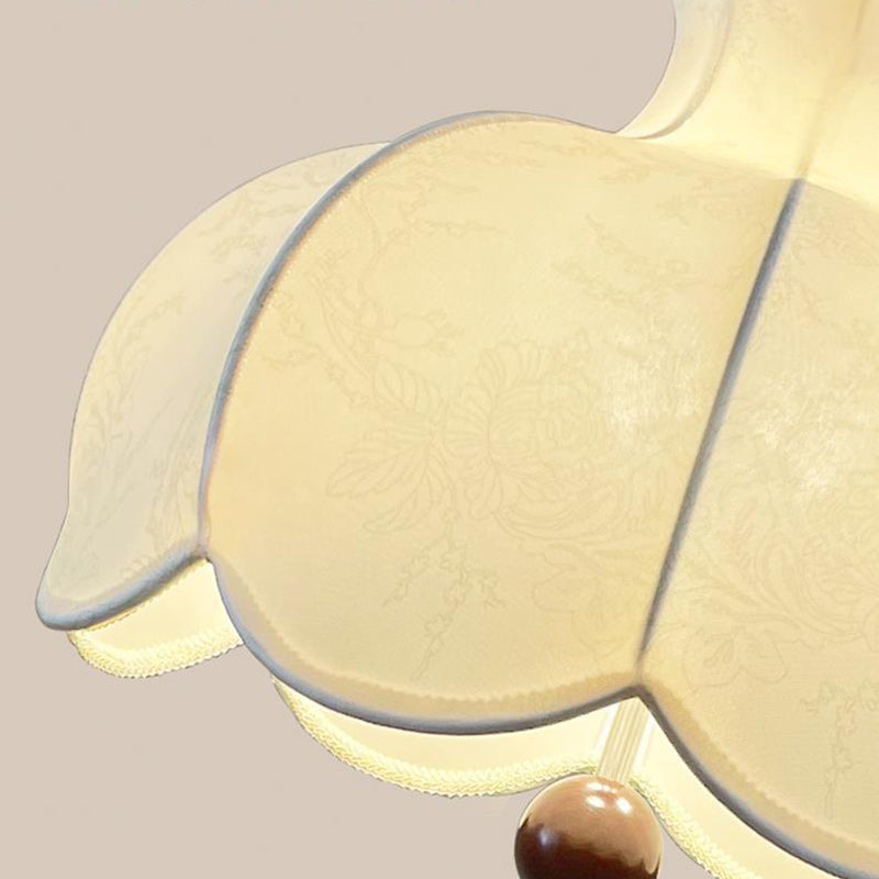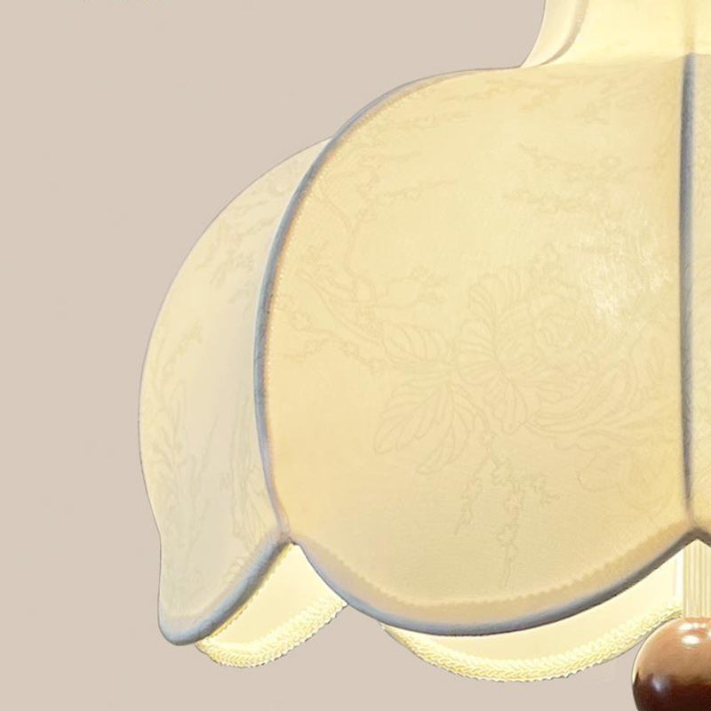 Modern Shabby Chic Printed Fabric Floral Shade Solid Wood 3-Light Pendant Light For Living Room