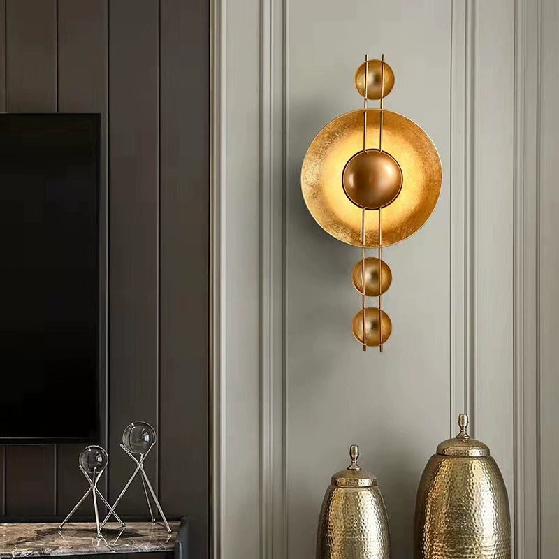 Modern Shabby Chic Round Iron Gold Foil LED Wall Sconce Lamp For Bedroom