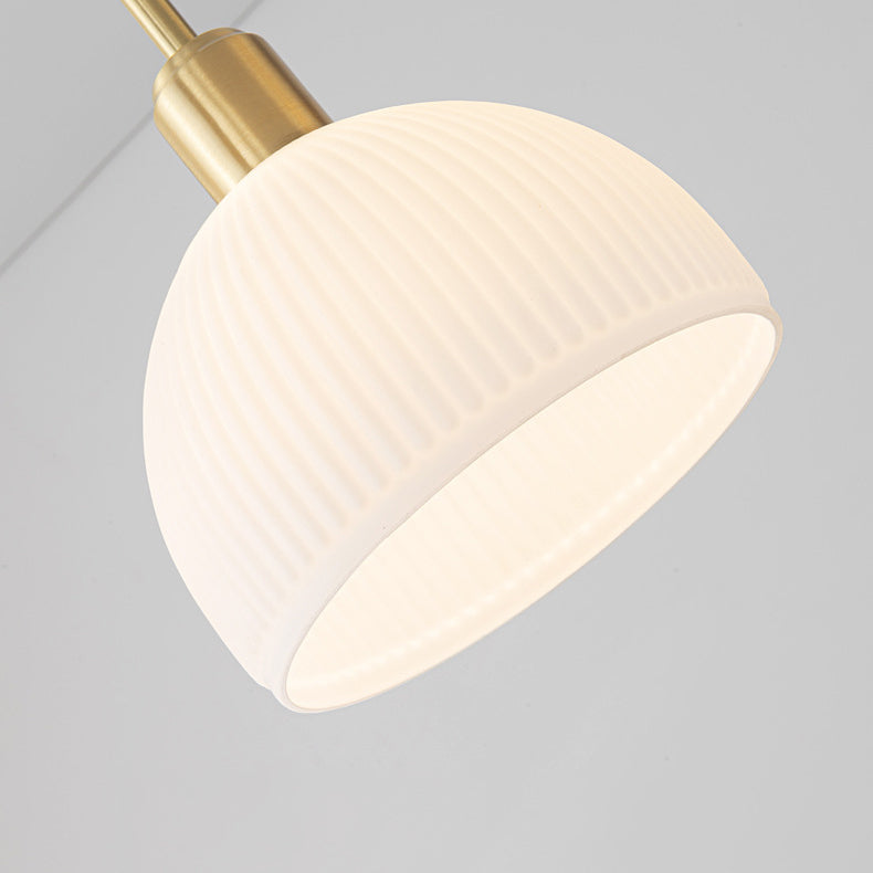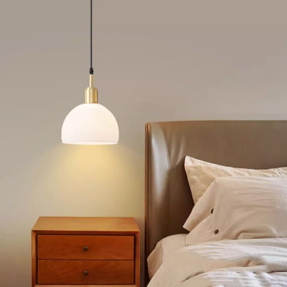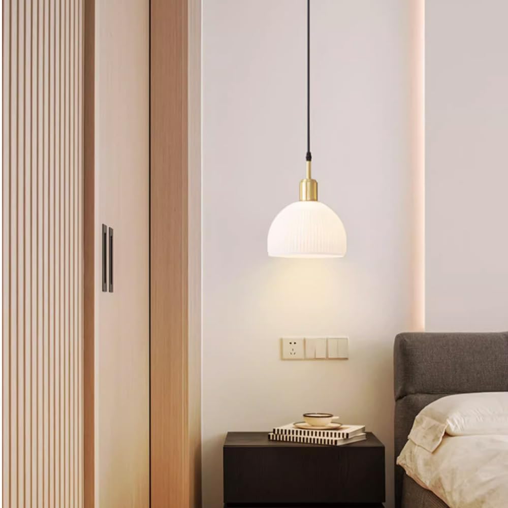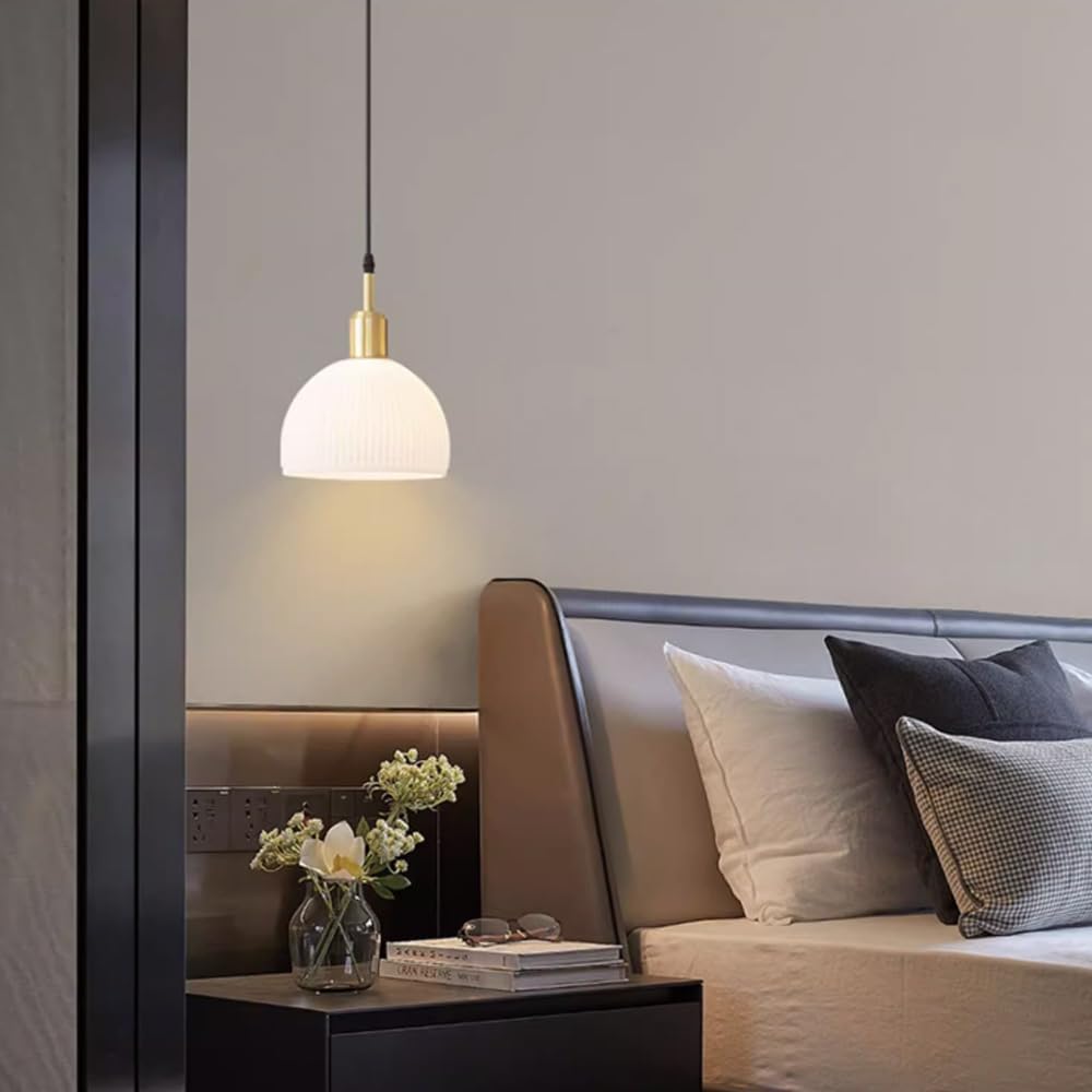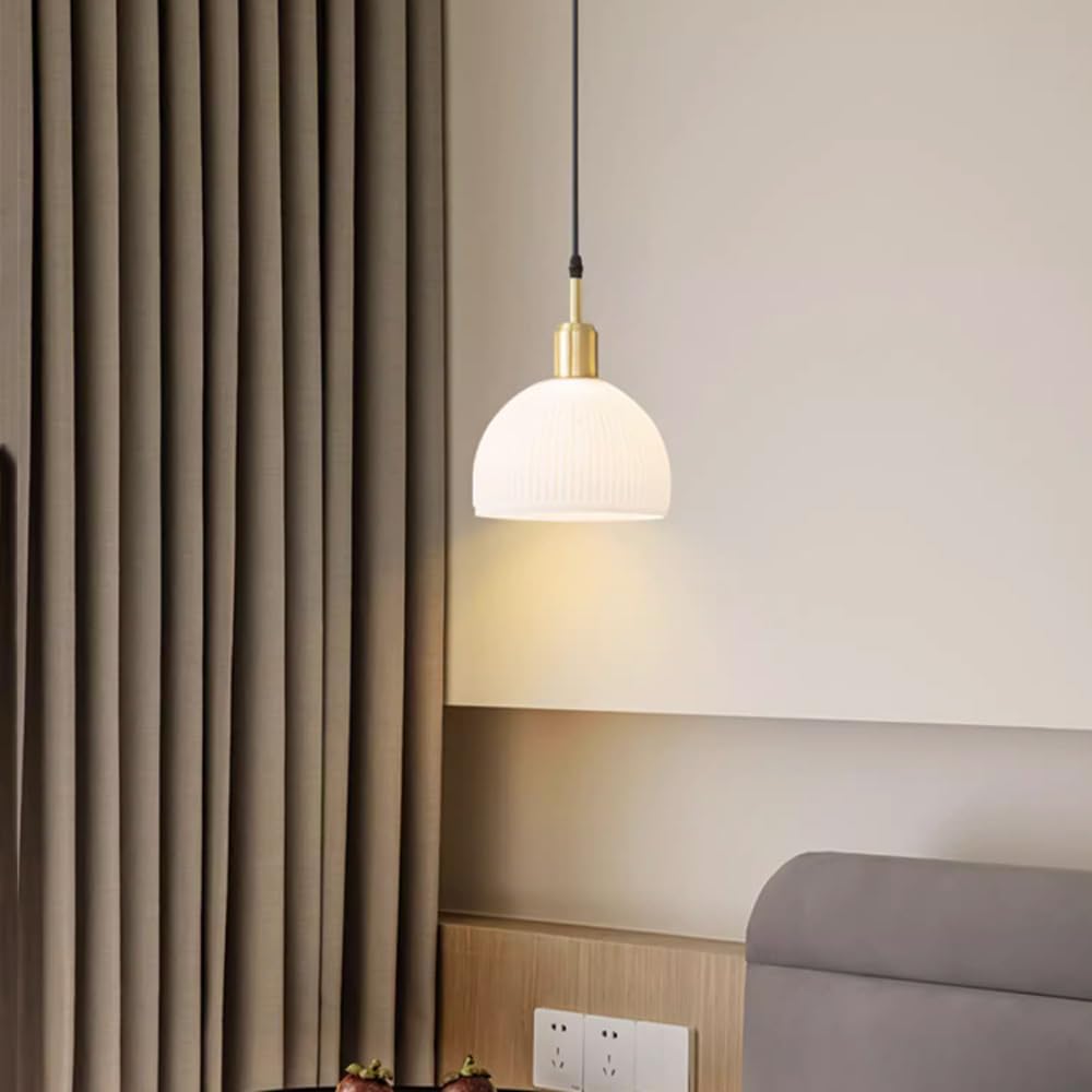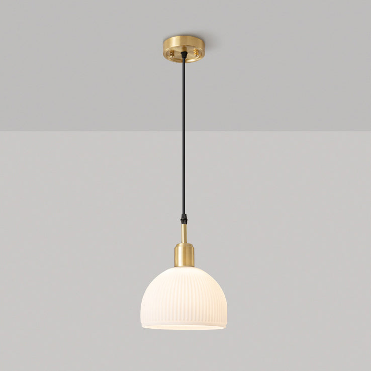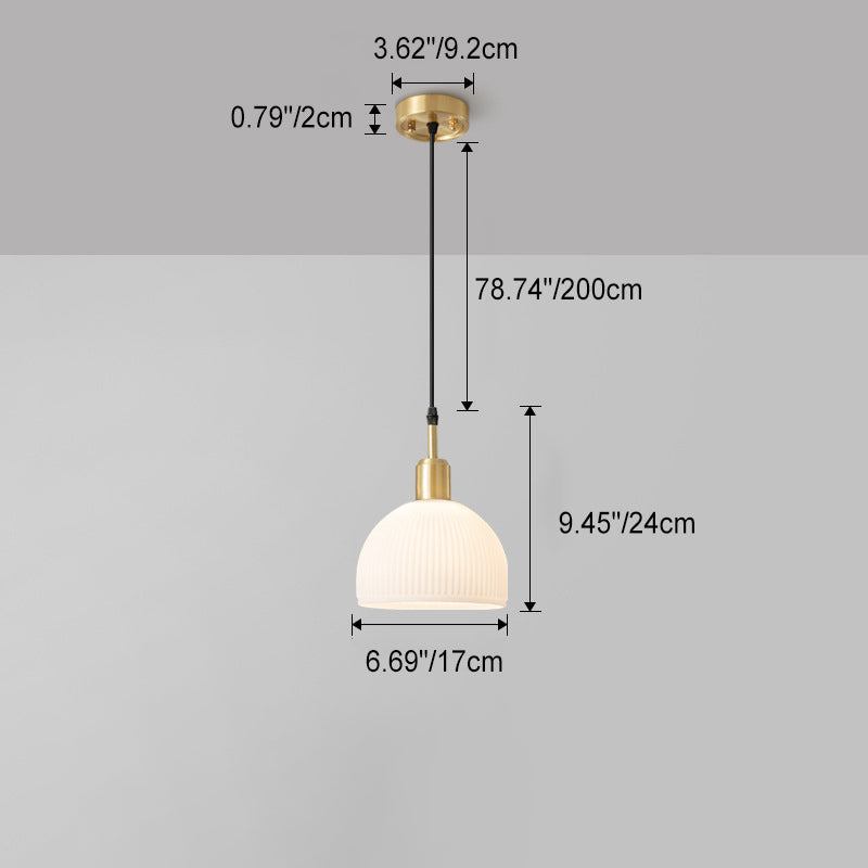 Modern Simplicity Antique Brass Frame Round Ribbed Glass 1-Light Pendant Light For Dining Room
