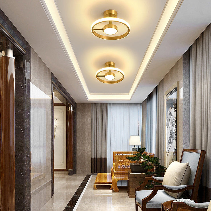 Modern Simplicity Brass Silicone Round Square LED Flush Mount Ceiling Light For Hallway