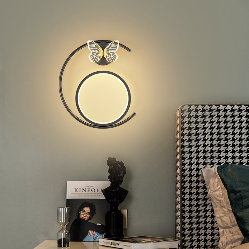 Modern Simplicity Butterfly Circle Iron Silicone Strip LED Wall Sconce Lamp For Bedroom