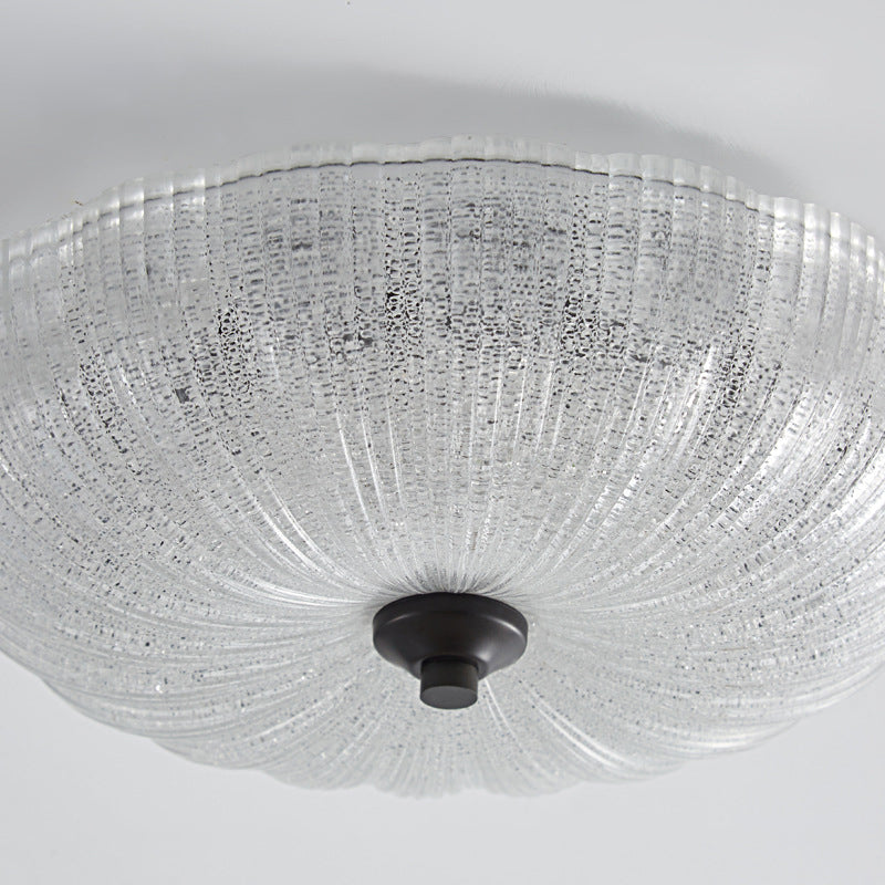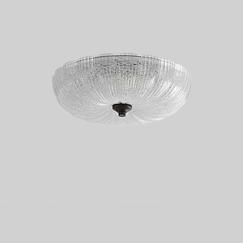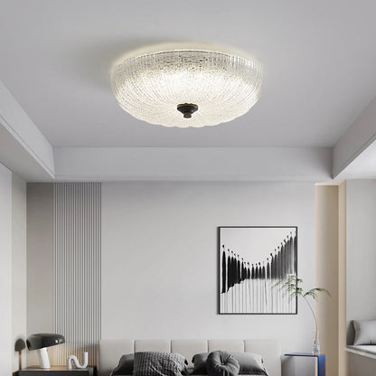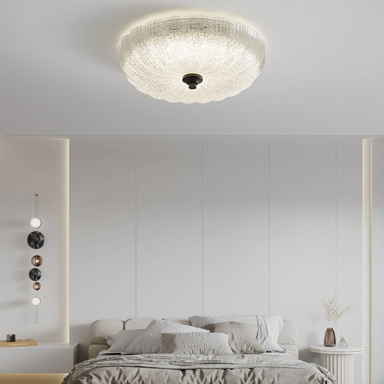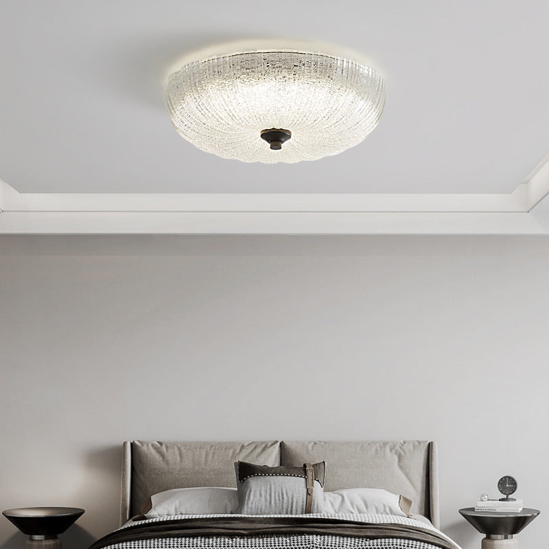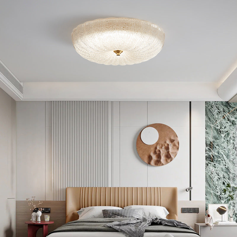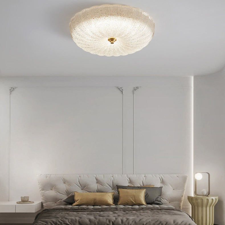 Modern Simplicity Copper Glass Round LED Flush Mount Ceiling Light For Bedroom